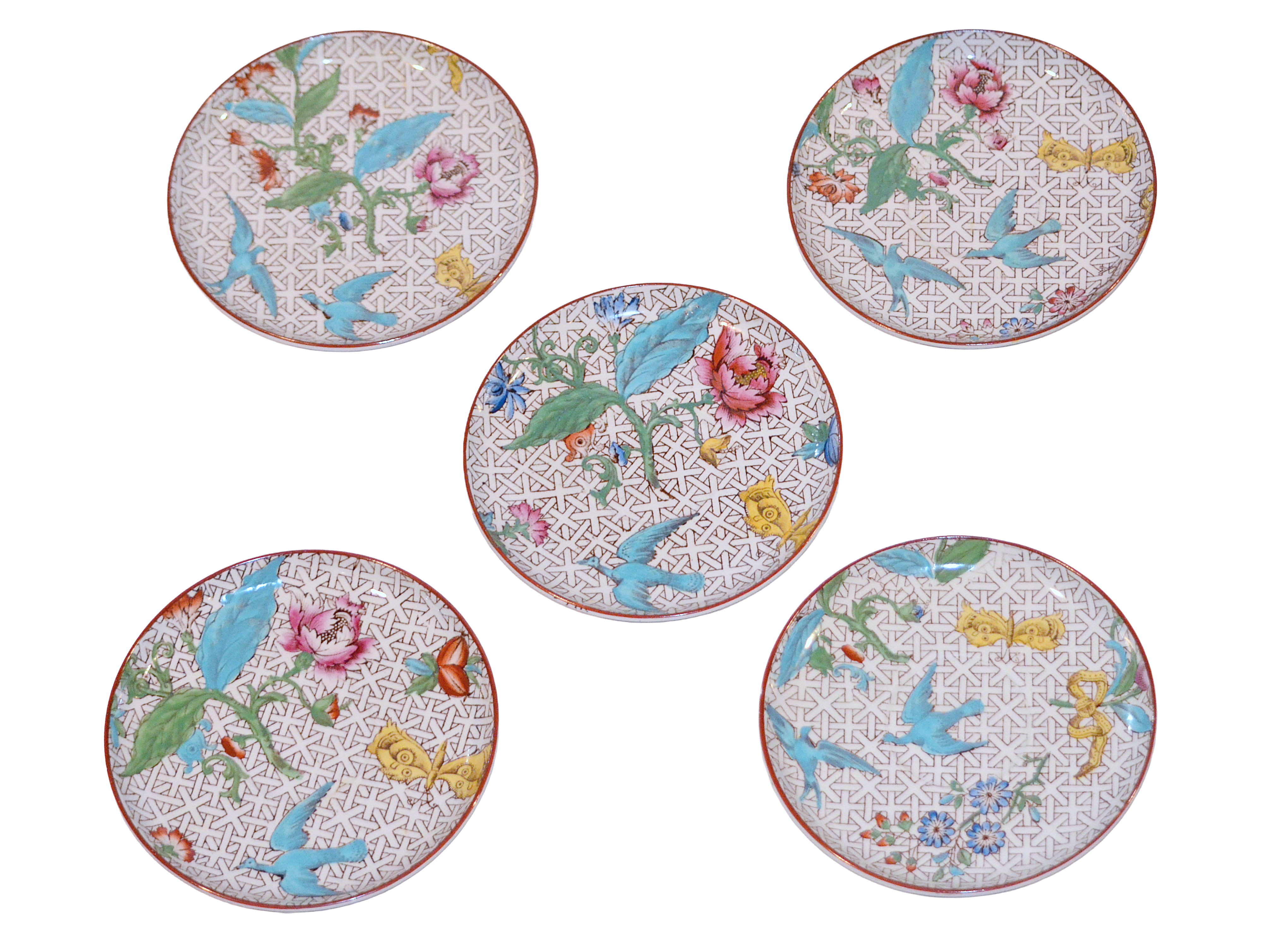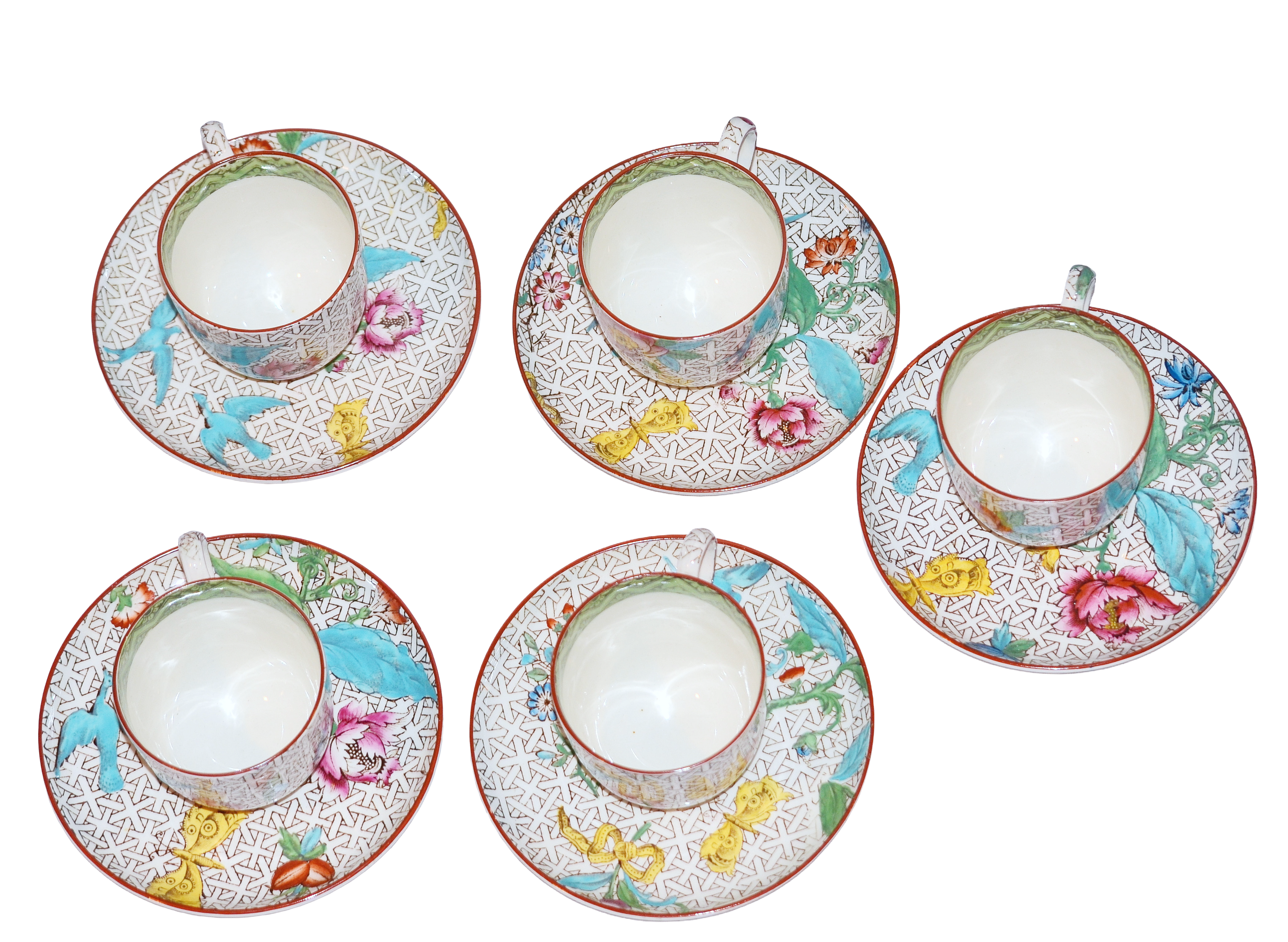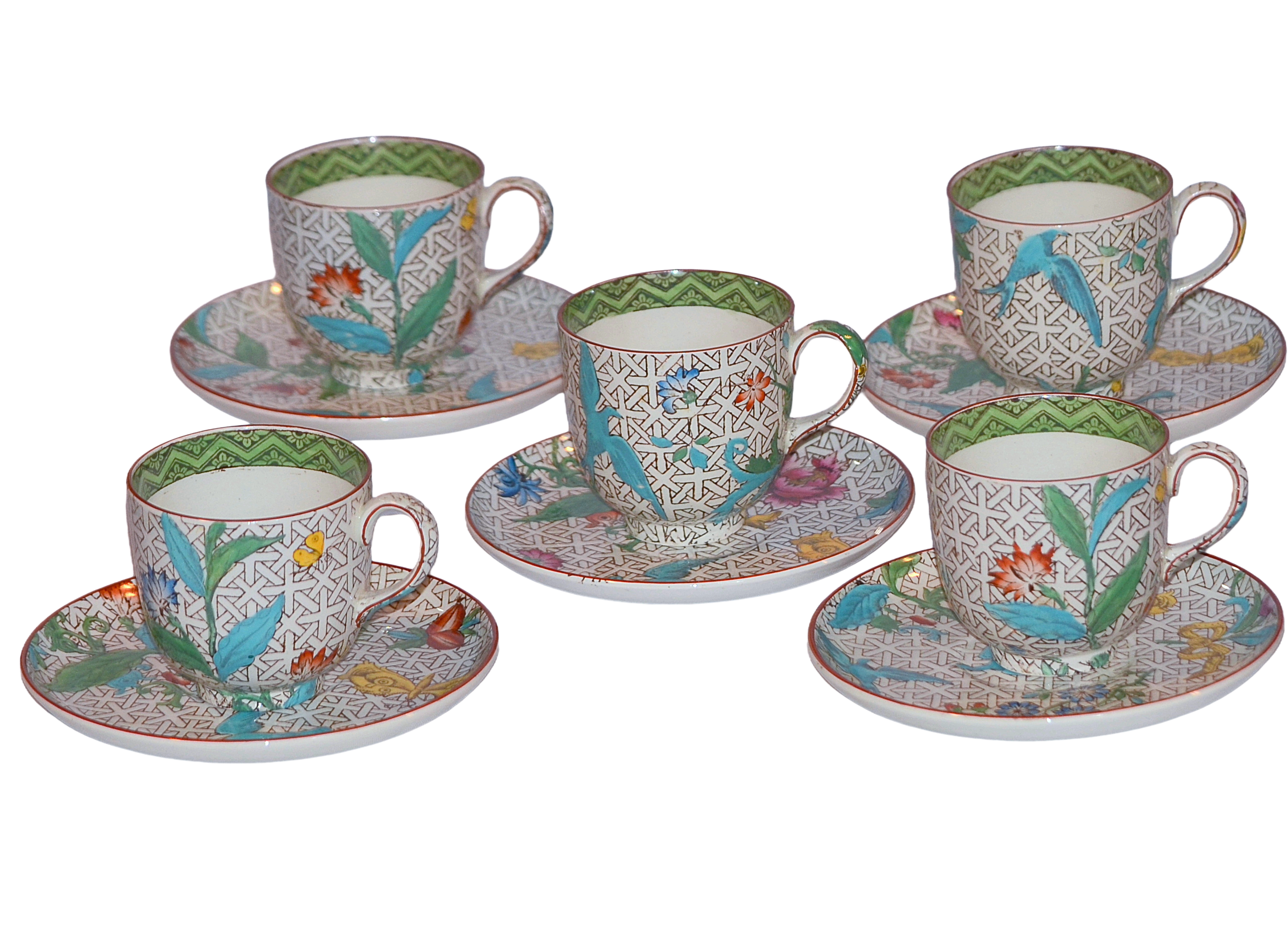 Wedgwood Demitasse 10 PC Cup Saucer Set HP Enamel Birds w/ Flowers