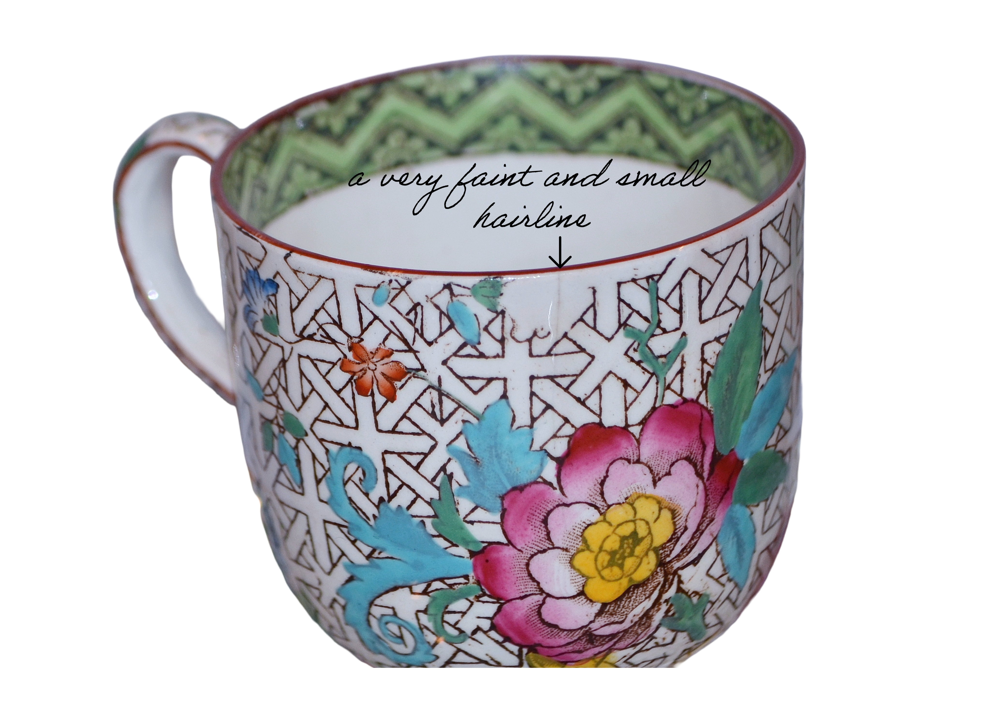 Condition: One cup has a flat surface flake that has resulted in a light hairline, photo closeup last image