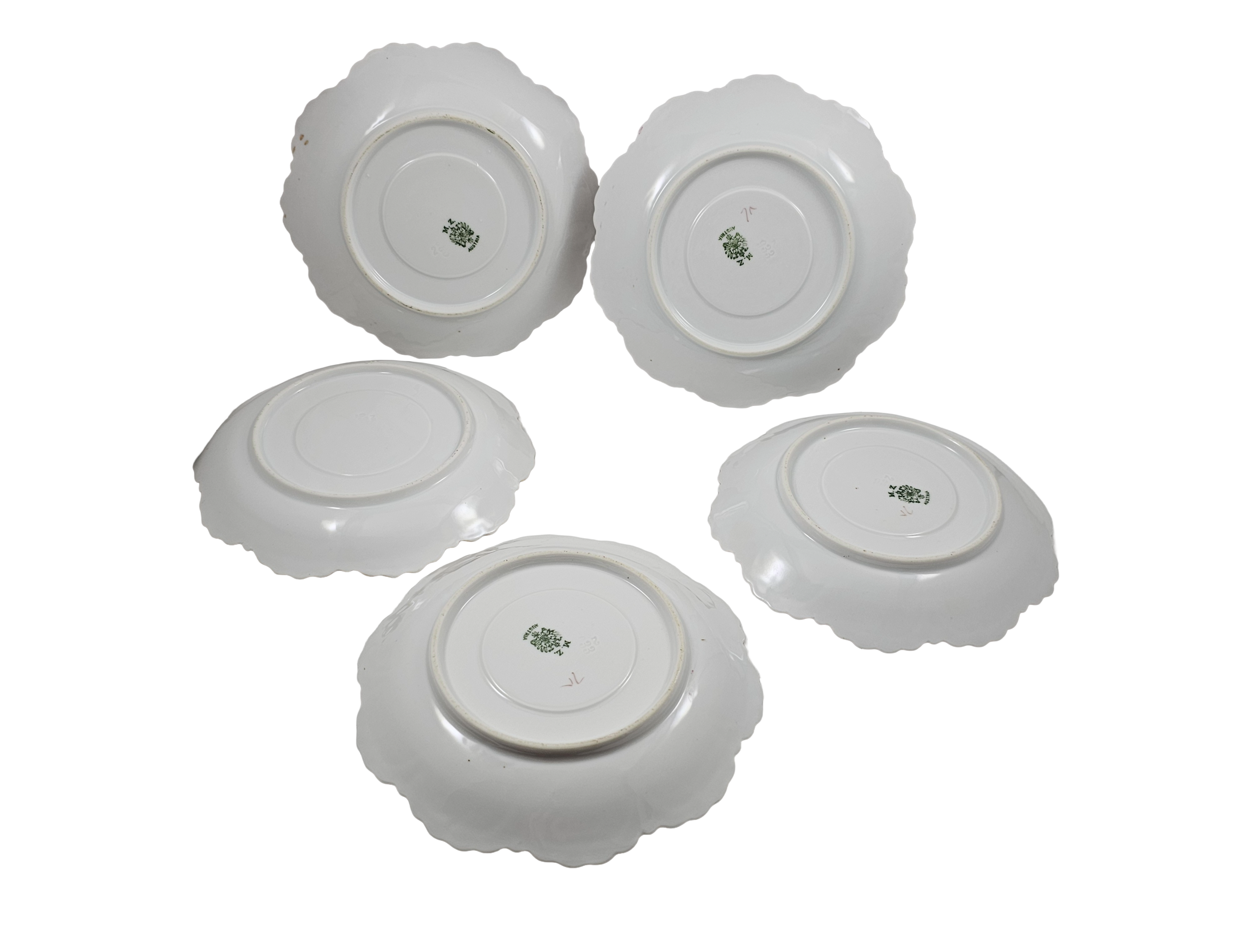 This stunning antique MZ Austria porcelain set includes 5 cups and matching saucers designed in an elegant Art Nouveau style. Featuring soft pink and green tones, each cup is adorned with hand-painted pink blossoms inside and out, while the saucers carry coordinating floral motifs. The scalloped edges are finished with refined gold trim, making this 10-piece set a beautifully detailed addition to your collection or tea service.