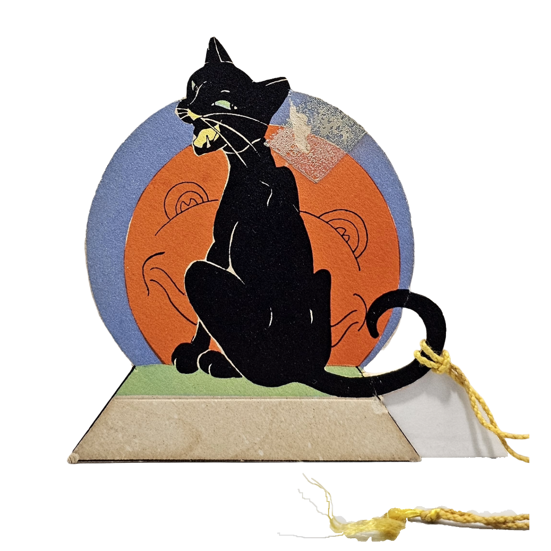 Four (4) Vintage Halloween Tally Cards Rust Craft Black Cats & Owl