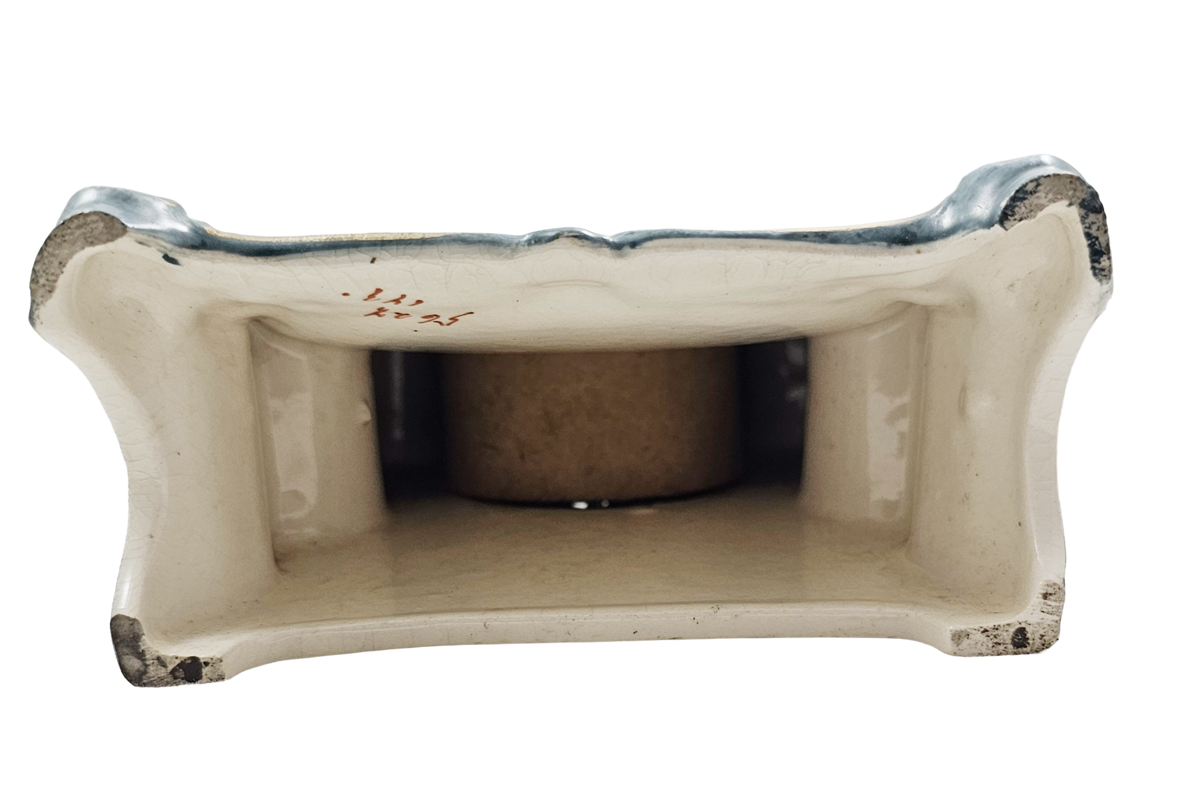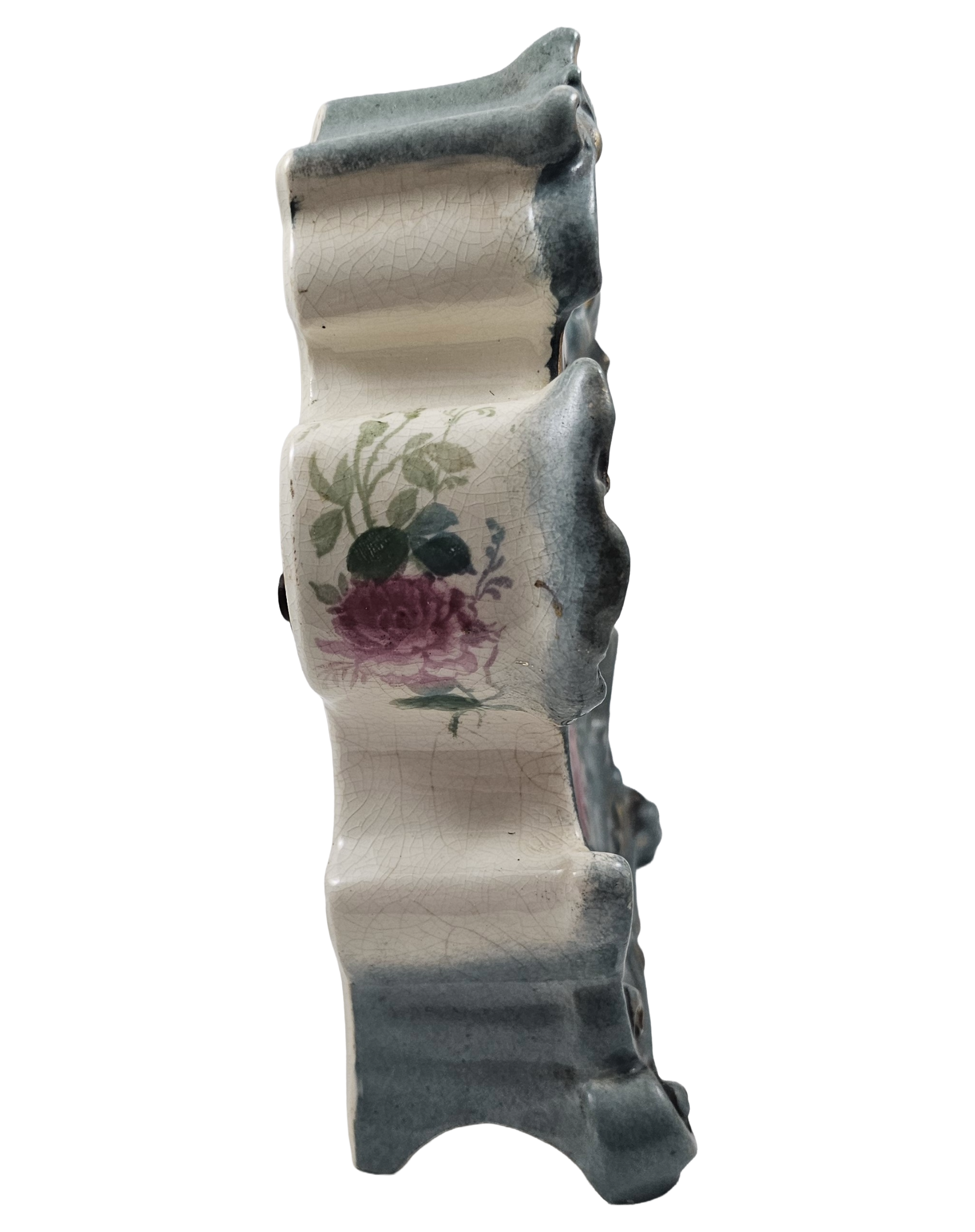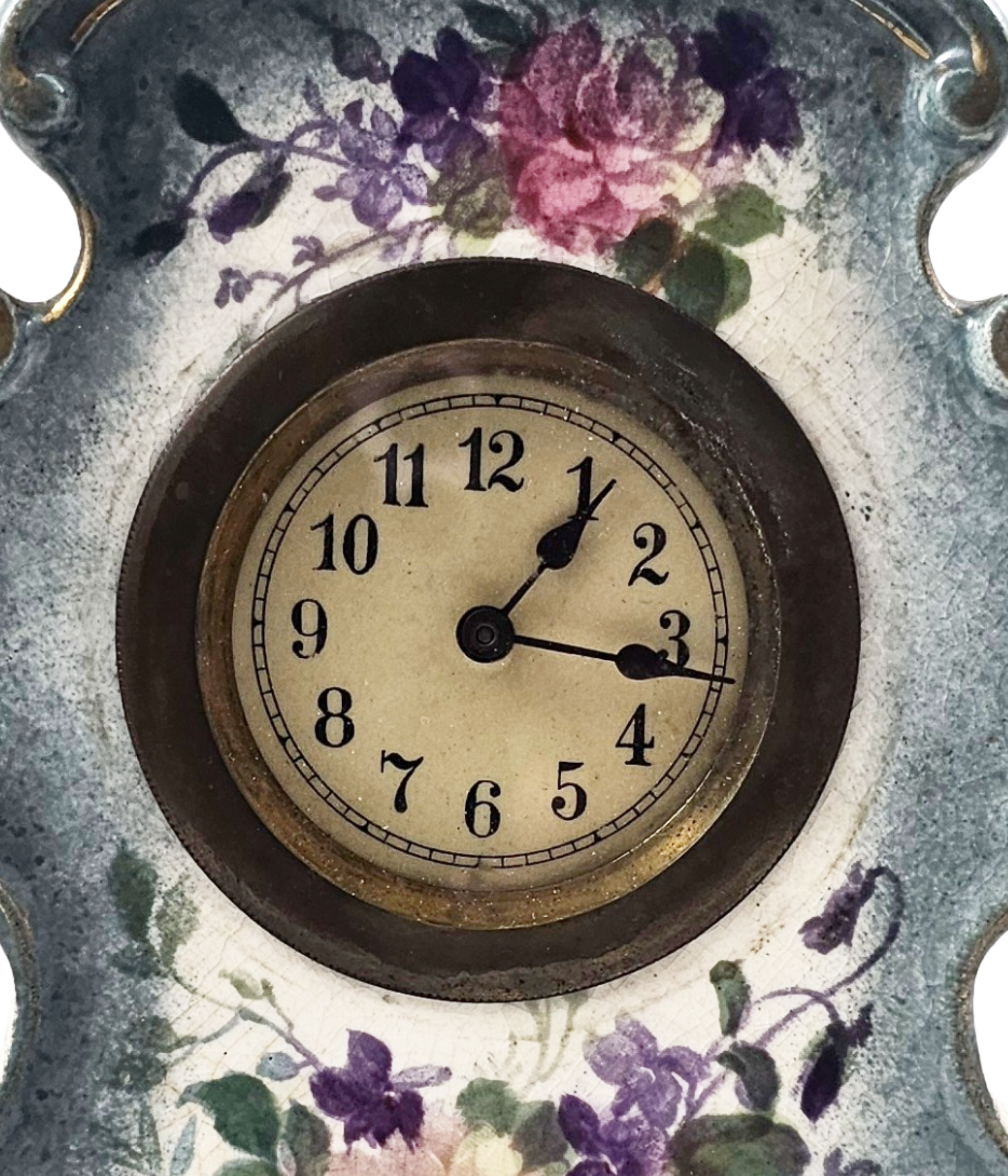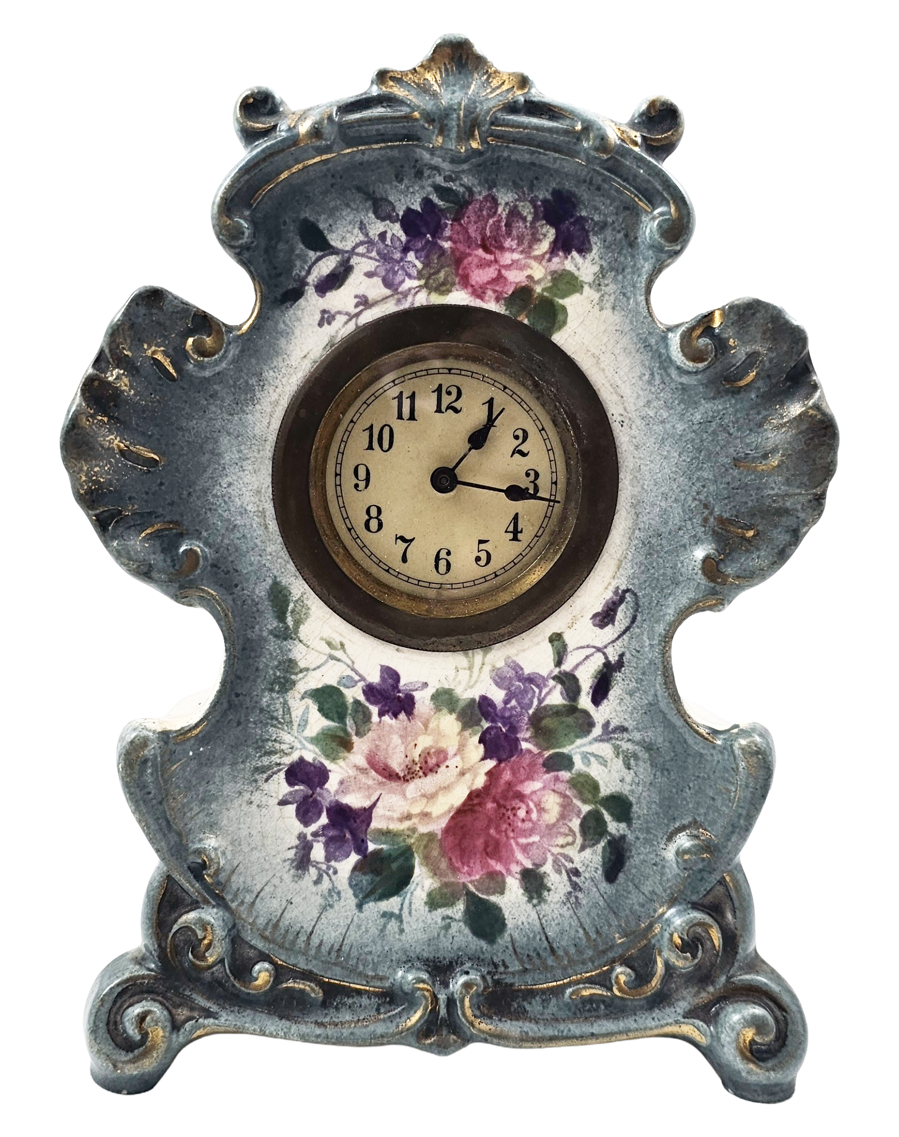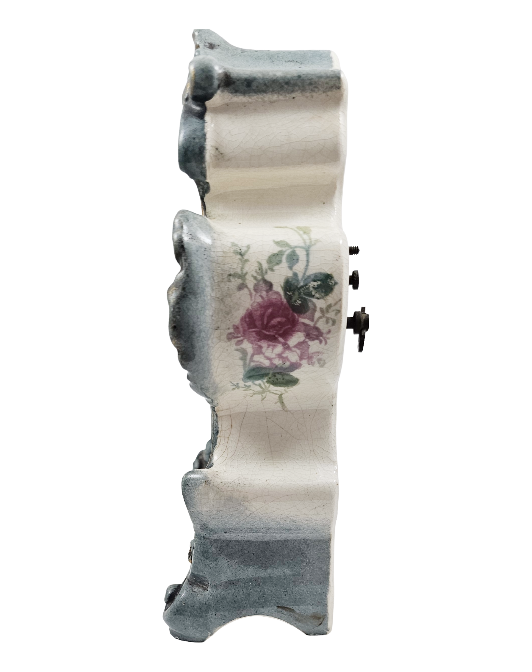 Condition: No Chips, Cracks, or Repairs, does have overall craquelure consistent with age. Clock is in working condition with original key. I am not by any means a clock expert but was able to wind the key and it worked.