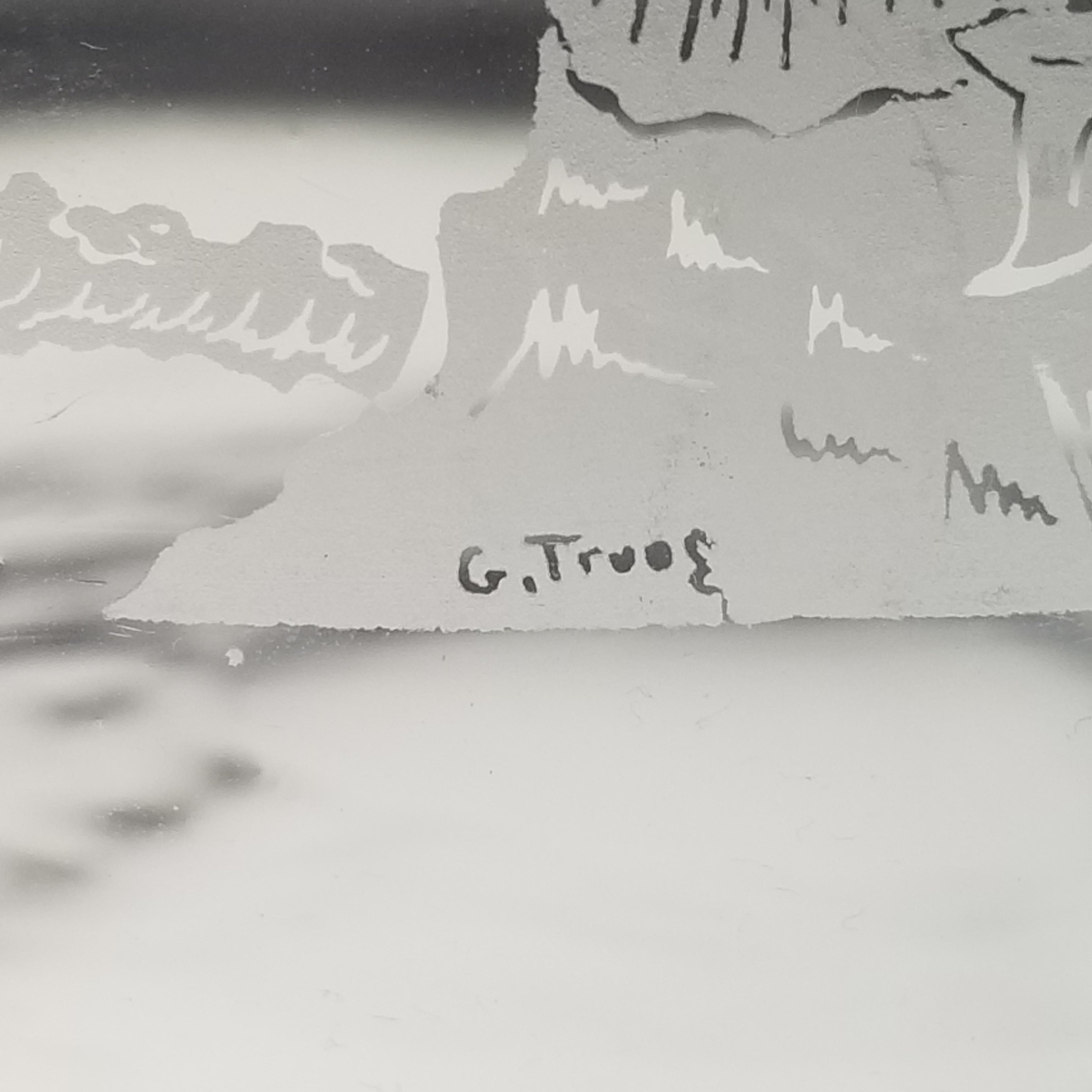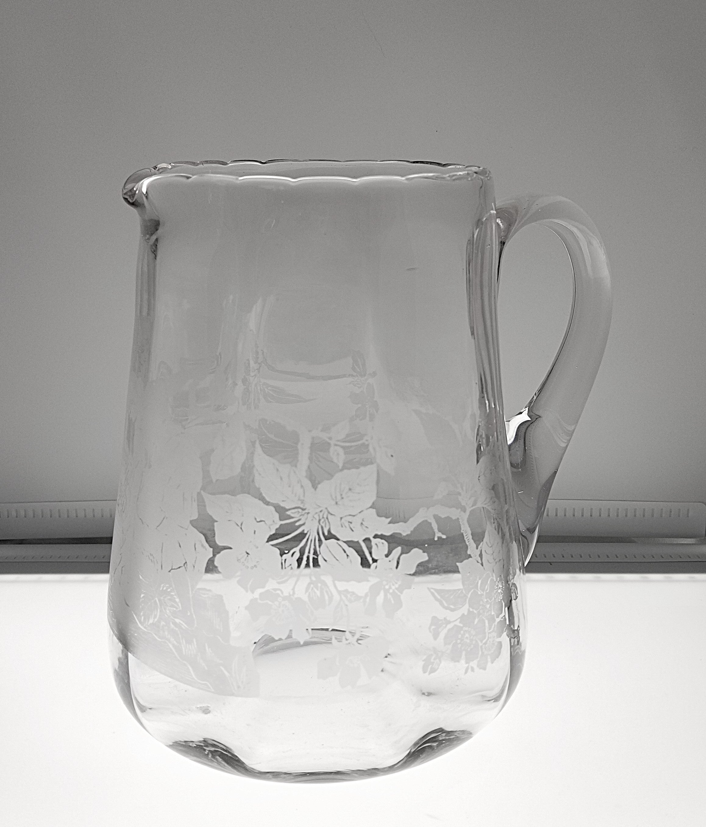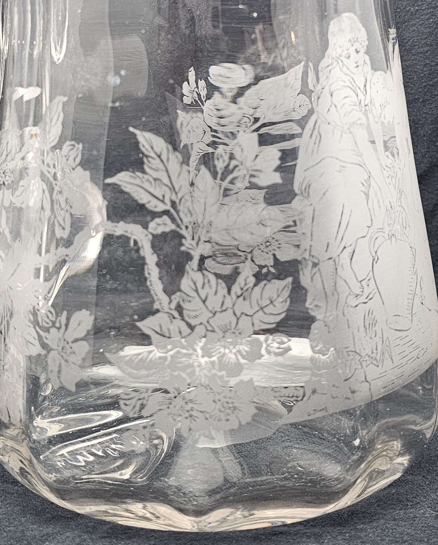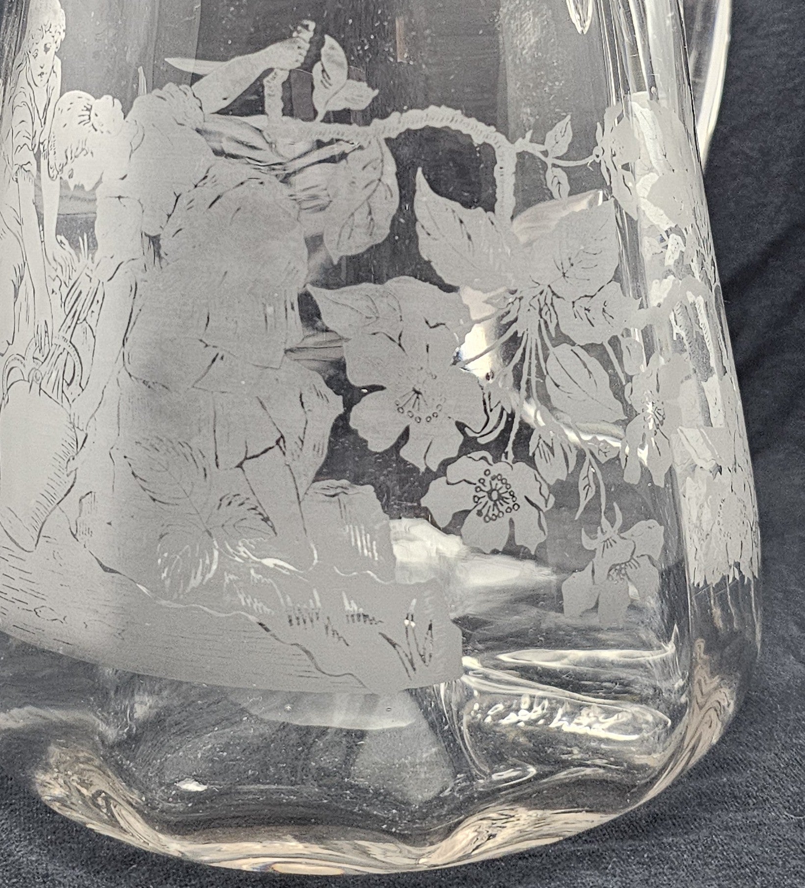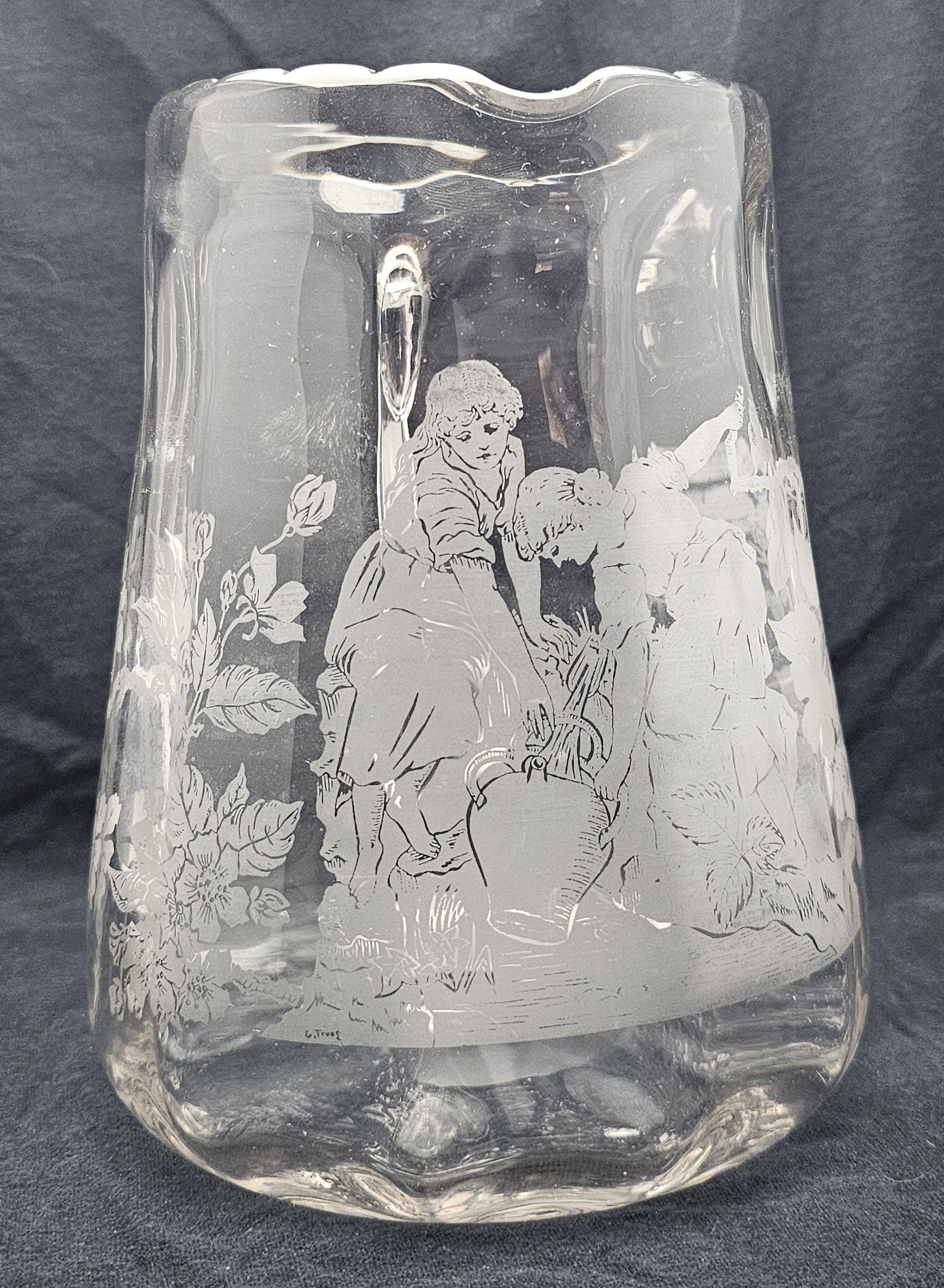 Maryland Acid Etched Glass Pitcher "Women at the Spring" Artist George Truog
