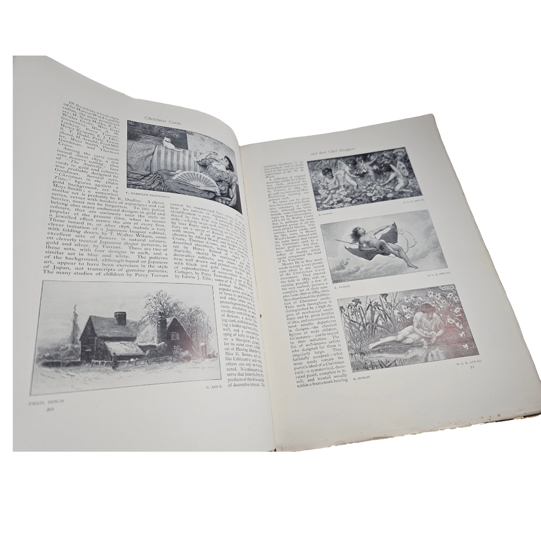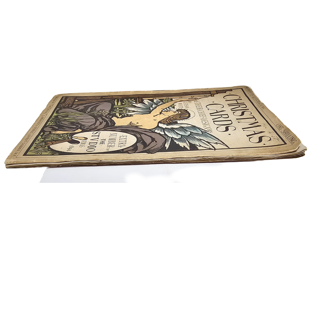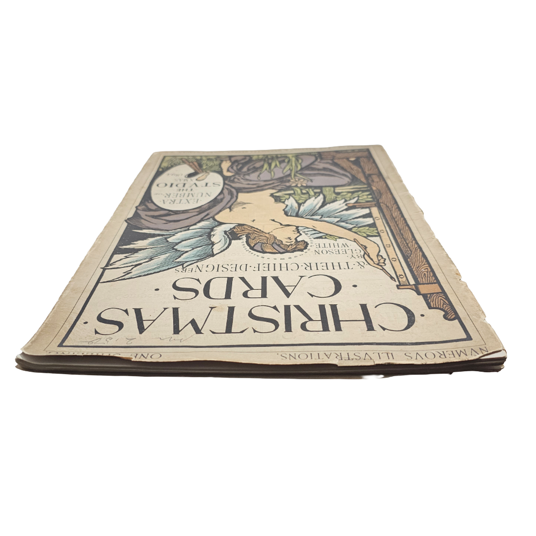Discover this remarkable 1894 Christmas issue of The Studio, curated by Gleeson White, showcasing the era's most celebrated holiday card designs. This Victorian treasure features an enchanting array of seasonal imagery—from angelic cherubs and winter landscapes to Dickens-inspired vignettes and nativity scenes. The stunning Art Nouveau cover presents a winged woman rendered in classical Greek goddess style, making this an exceptional find for collectors of period design and holiday ephemera. A rare glimpse into how Victorians celebrated Christmas through artistic expression.