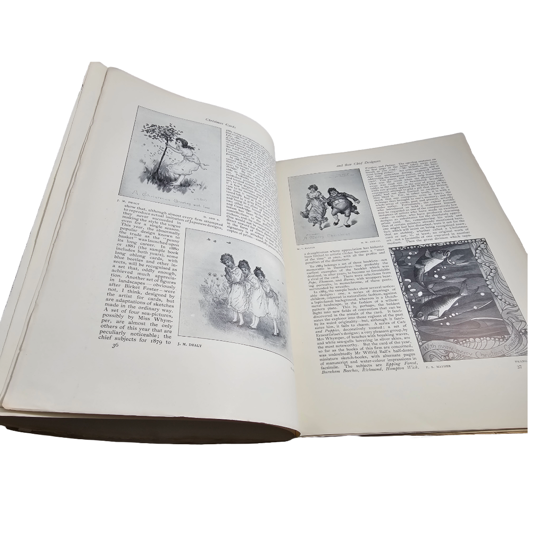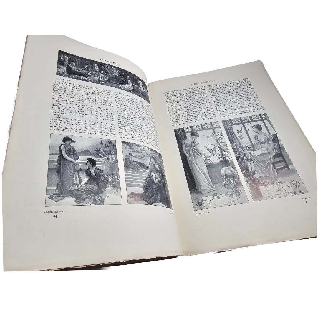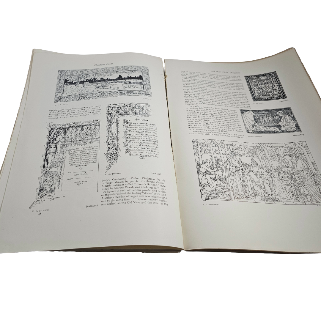Discover this remarkable 1894 Christmas issue of The Studio, curated by Gleeson White, showcasing the era's most celebrated holiday card designs. This Victorian treasure features an enchanting array of seasonal imagery—from angelic cherubs and winter landscapes to Dickens-inspired vignettes and nativity scenes. The stunning Art Nouveau cover presents a winged woman rendered in classical Greek goddess style, making this an exceptional find for collectors of period design and holiday ephemera. A rare glimpse into how Victorians celebrated Christmas through artistic expression.