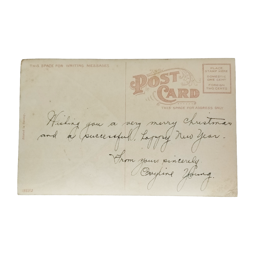 Christmas Postcard Real Photo Style Woman in Winter Landscape