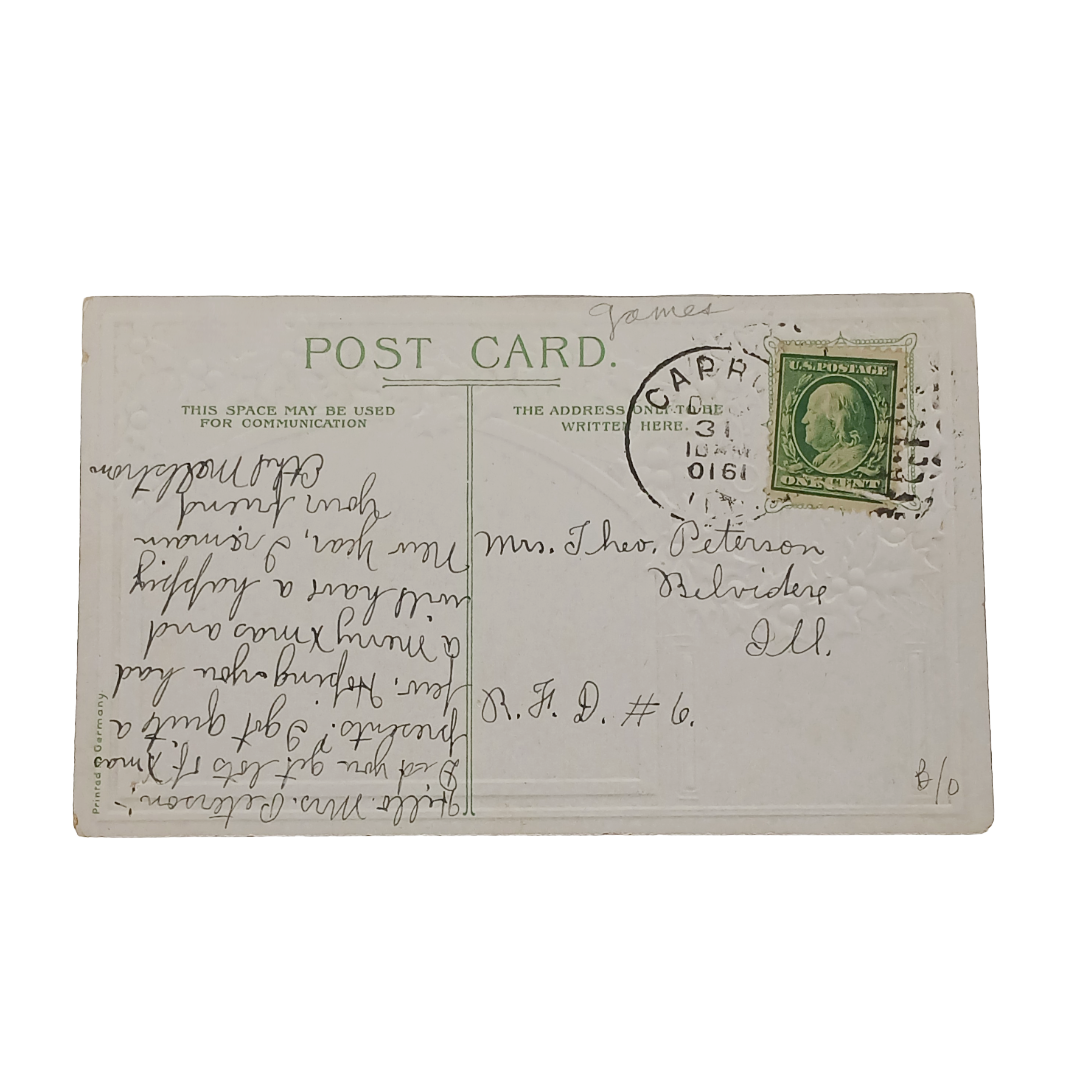 New Year Postcard Two Children Playing w/ Toy Silver Embossed Background