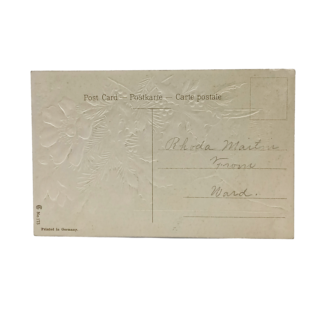 Christmas Postcard Gold Embossed Evening Landscape Pink Flowers in Snow