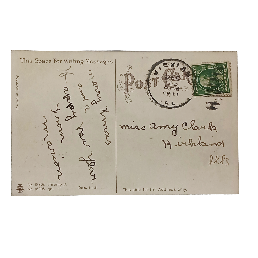 Christmas Postcard Series 18027 Chromo Card Snowy Evening Landscape
