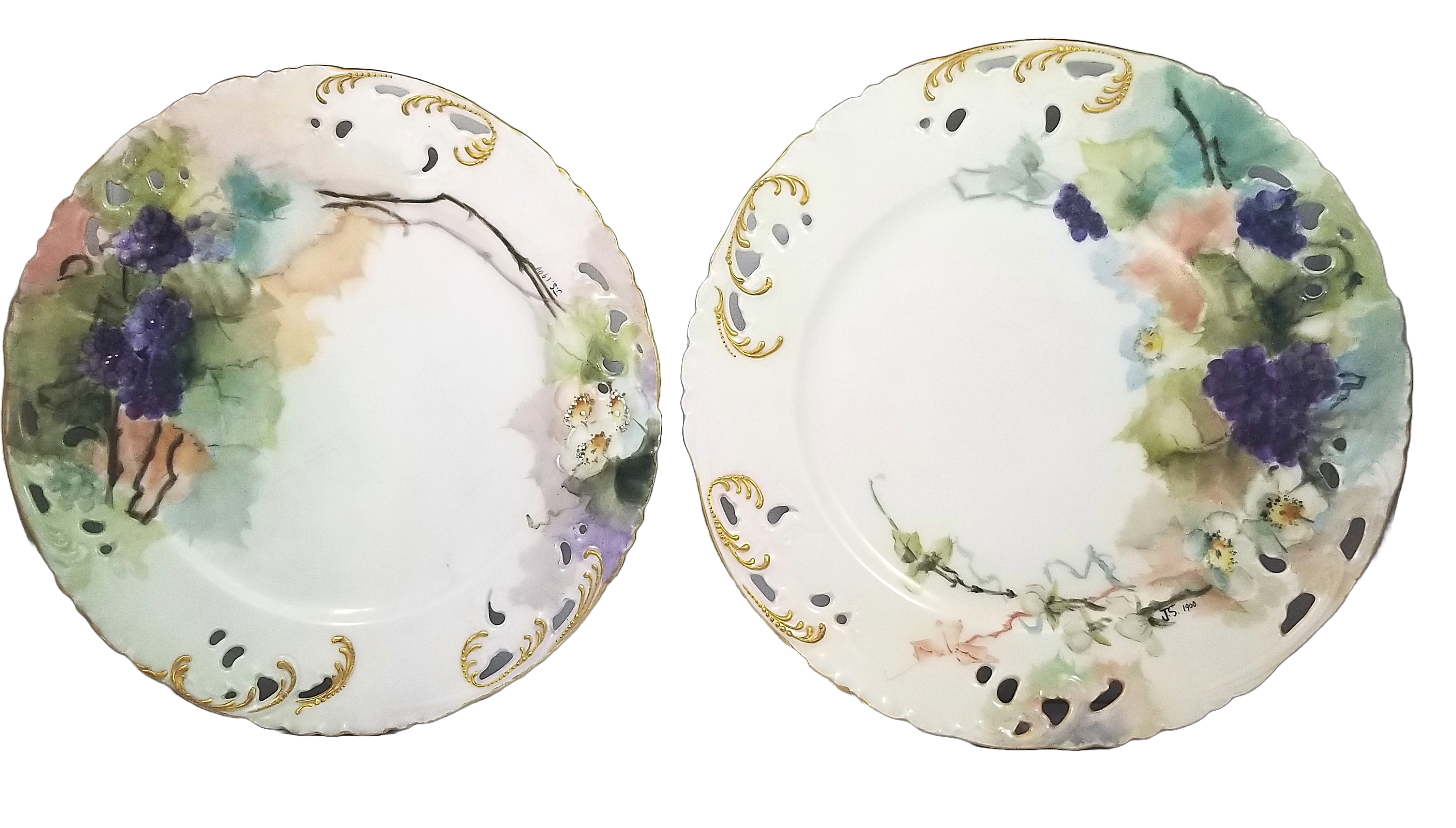 Limoges Porcelain HP Haviland Gerard AS 6 PC Pierced Grapes Fruit Plate Set
