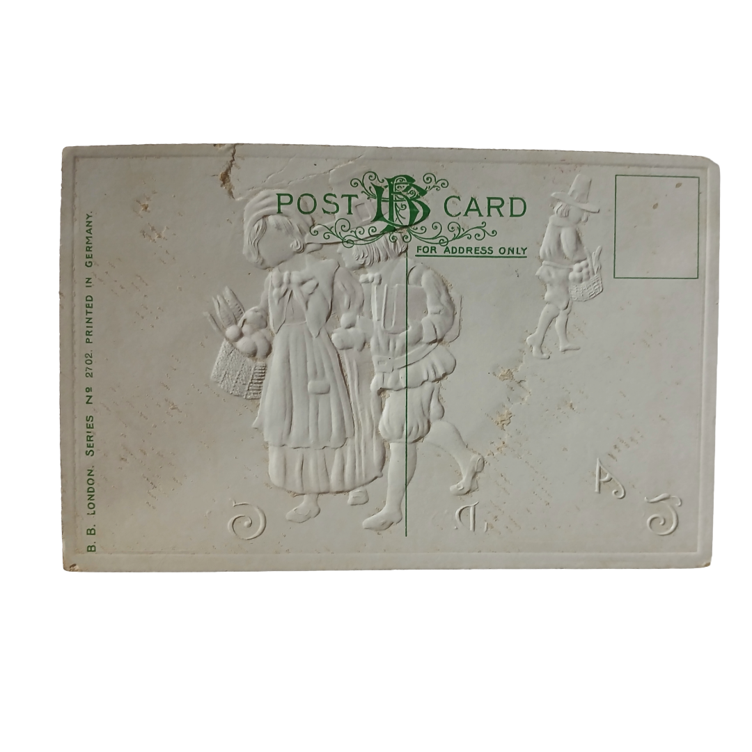 Thanksgiving Postcard Pilgrim Children Walking on Path Series 2702