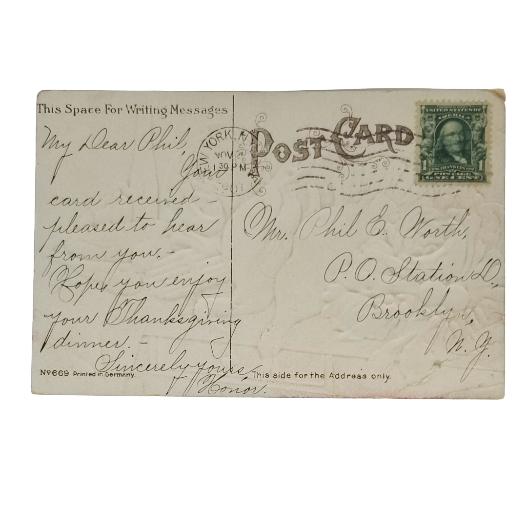 Thanksgiving Postcard Turkeys Harvest Dinner Table