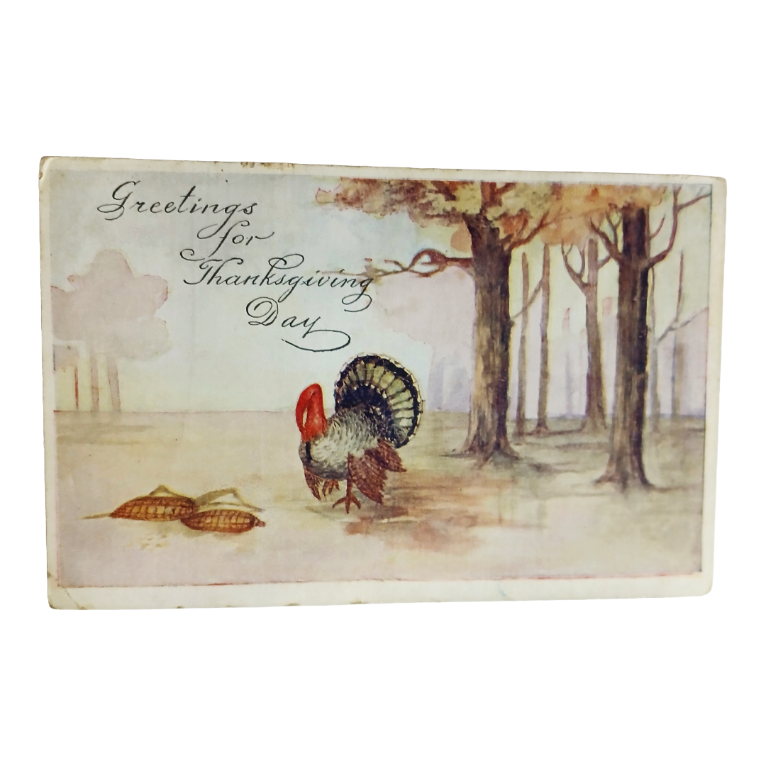 Thanksgiving Postcard Watercolor Style Turkey in Forest