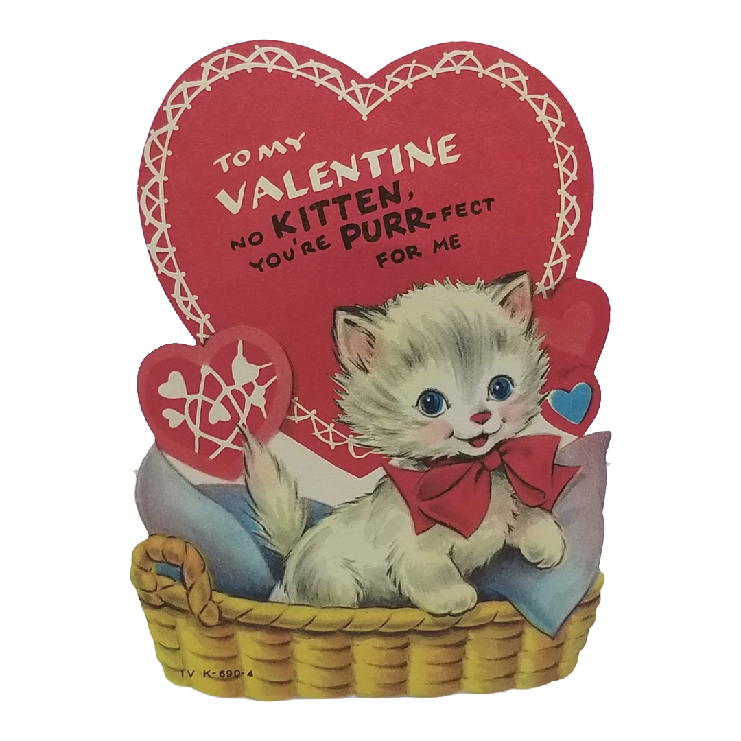 Die Cut Valentine Card "You're Purr-fect to Me" Kitten in Basket