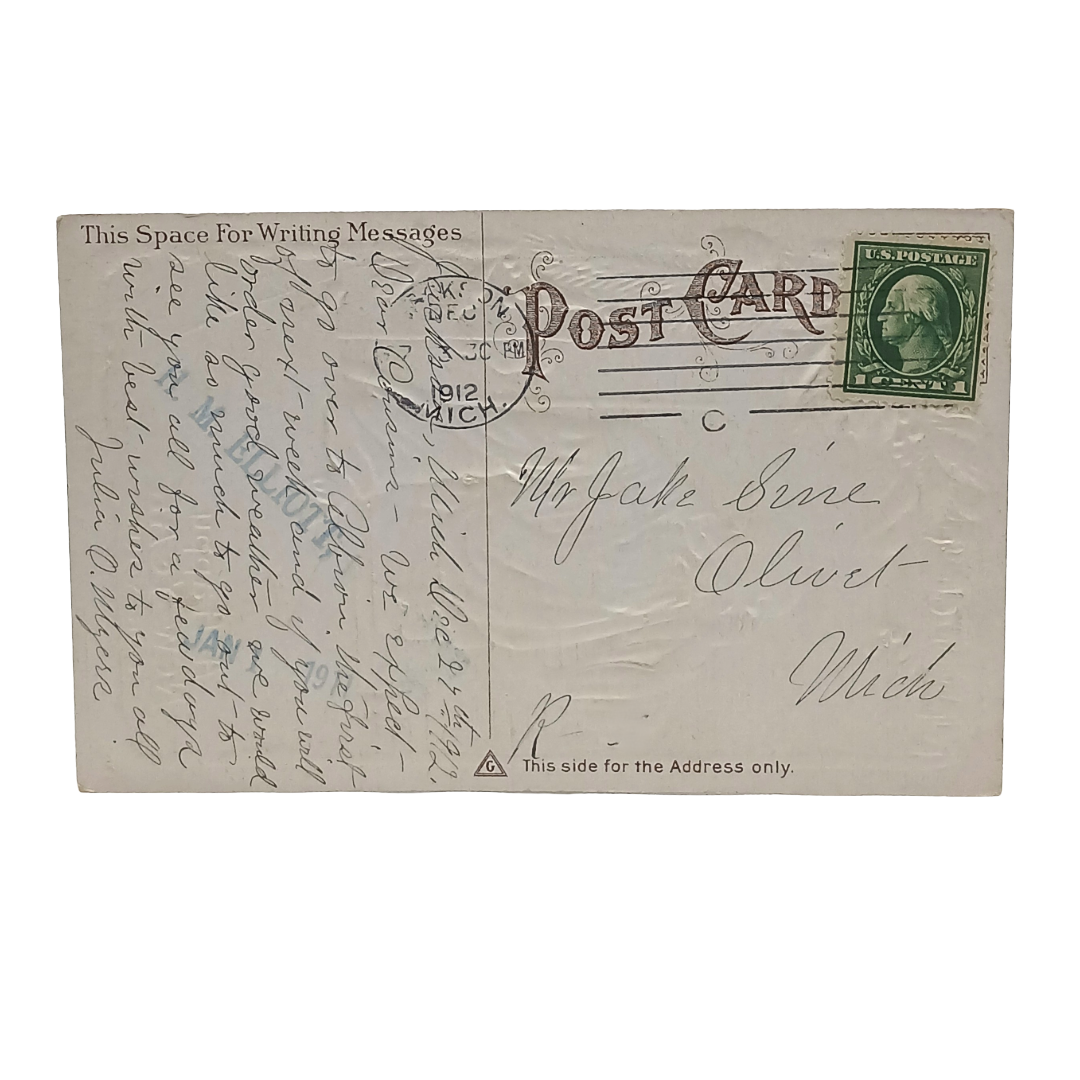 New Year Postcard Tuck Father Time w/ Cherub On Calendar Embossed Gold Background