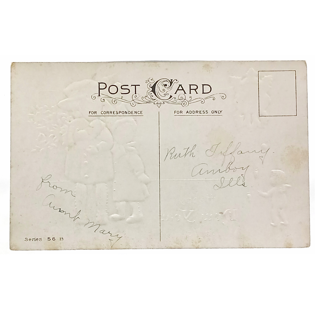 New Year Postcard Two Children Watching Cherub Play w/ Clock Series 56 B