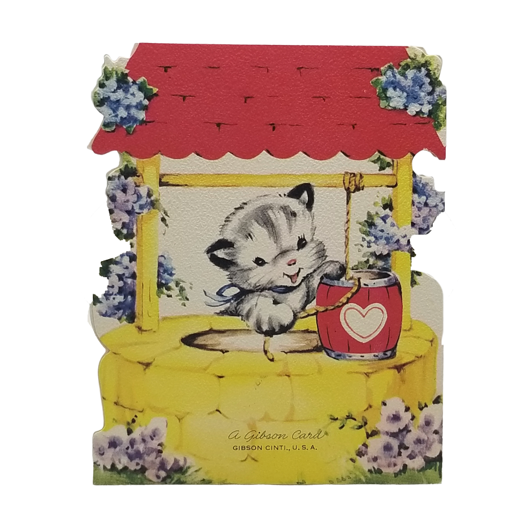 Vintage Die Cut Valentine Hallmark Card Kitten at Water Well