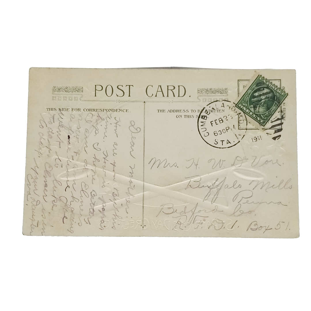 Vintage Saint Patrick's Day Postcard Winsch Crossed Pipes w/Bucolic Irish Scene