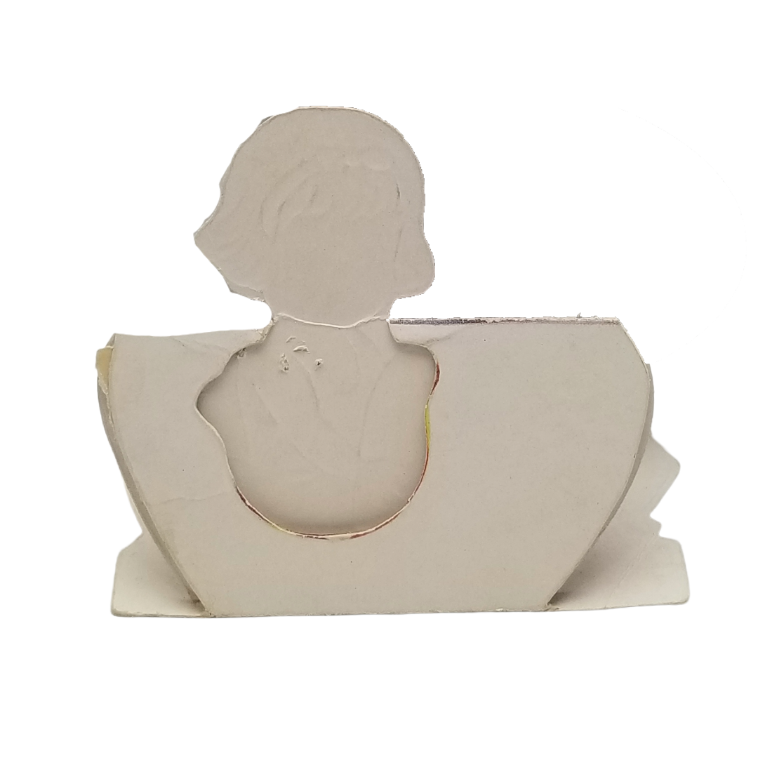 Vintage Valentine Die Cut Girl in Boat Holding Heart Pop Out Card