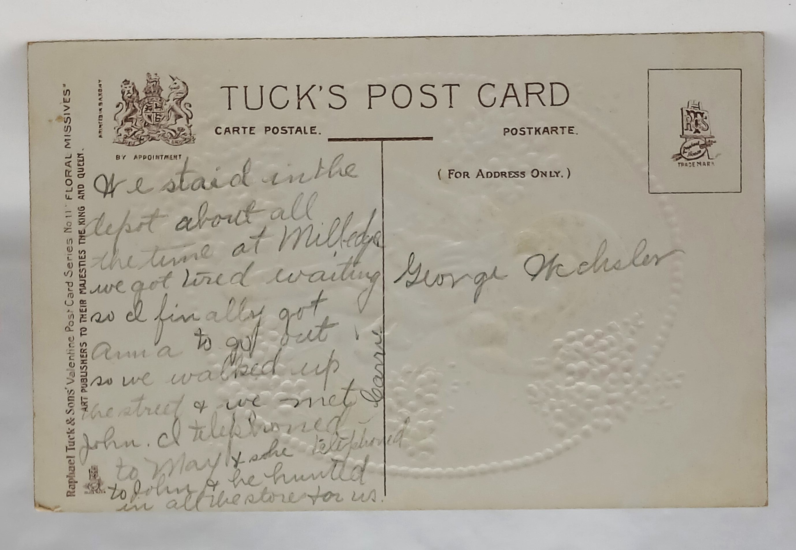 This early 1900s Valentine postcard from German Series 1038 depicts...