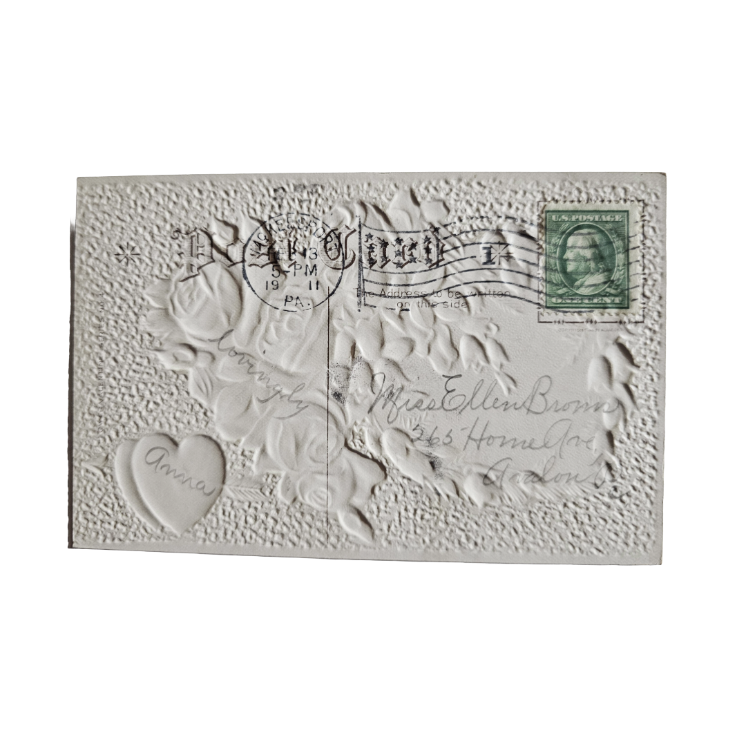 Valentine Postcard Winsch Victorian Woman Inside Heart w/Hearts on Leaf...