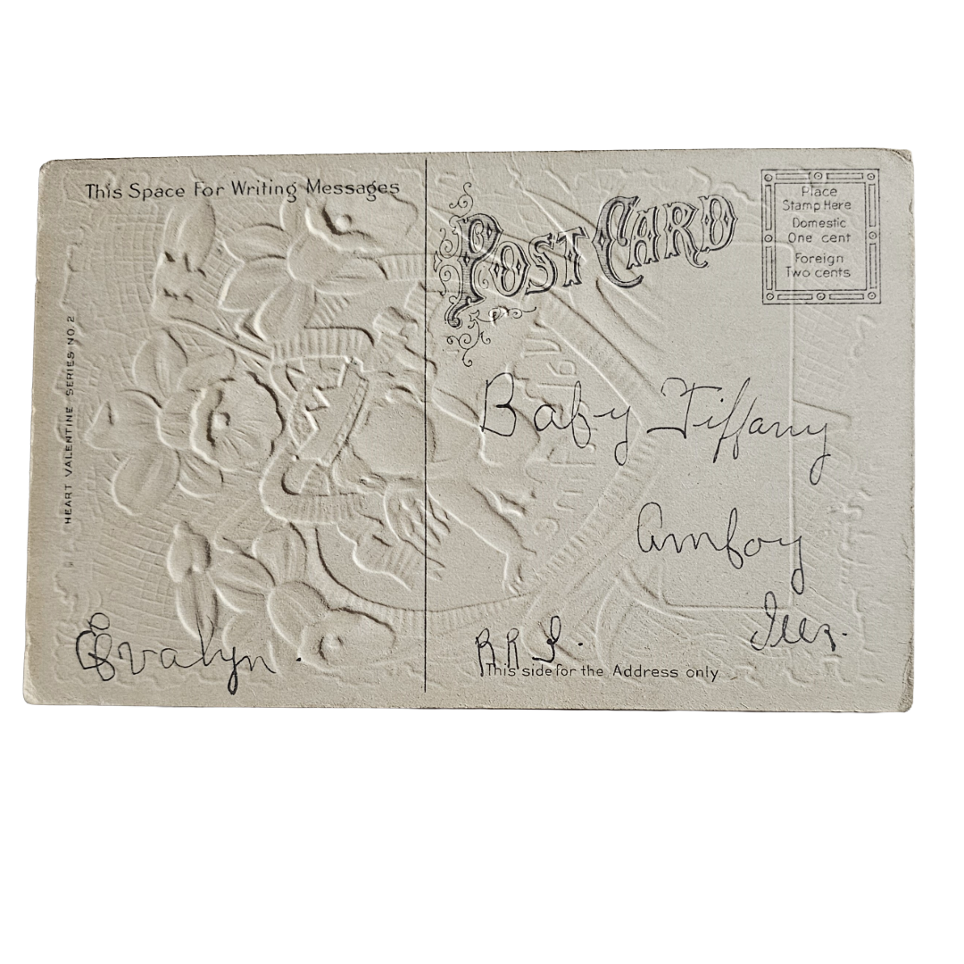 Valentine Postcard Heart Series 2 Gold Back Cupid in Crown Flower Border