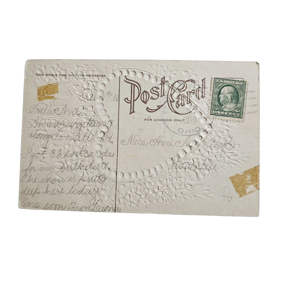 Valentine Postcard Winsch Victorian Woman Inside Heart w/Hearts on Leaf...