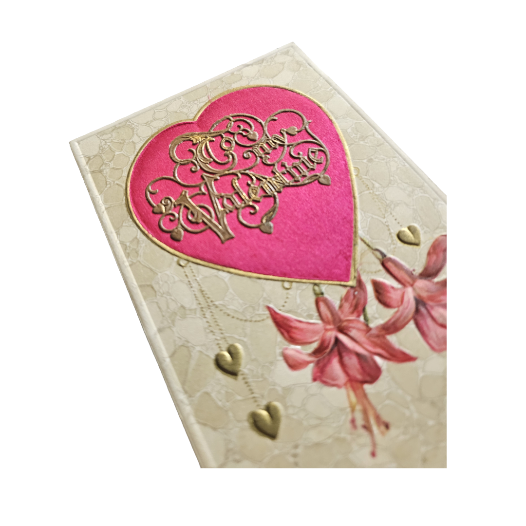 Winsch Valentine Postcard Silk Heart Applied Gold and Fuchsia Flowers