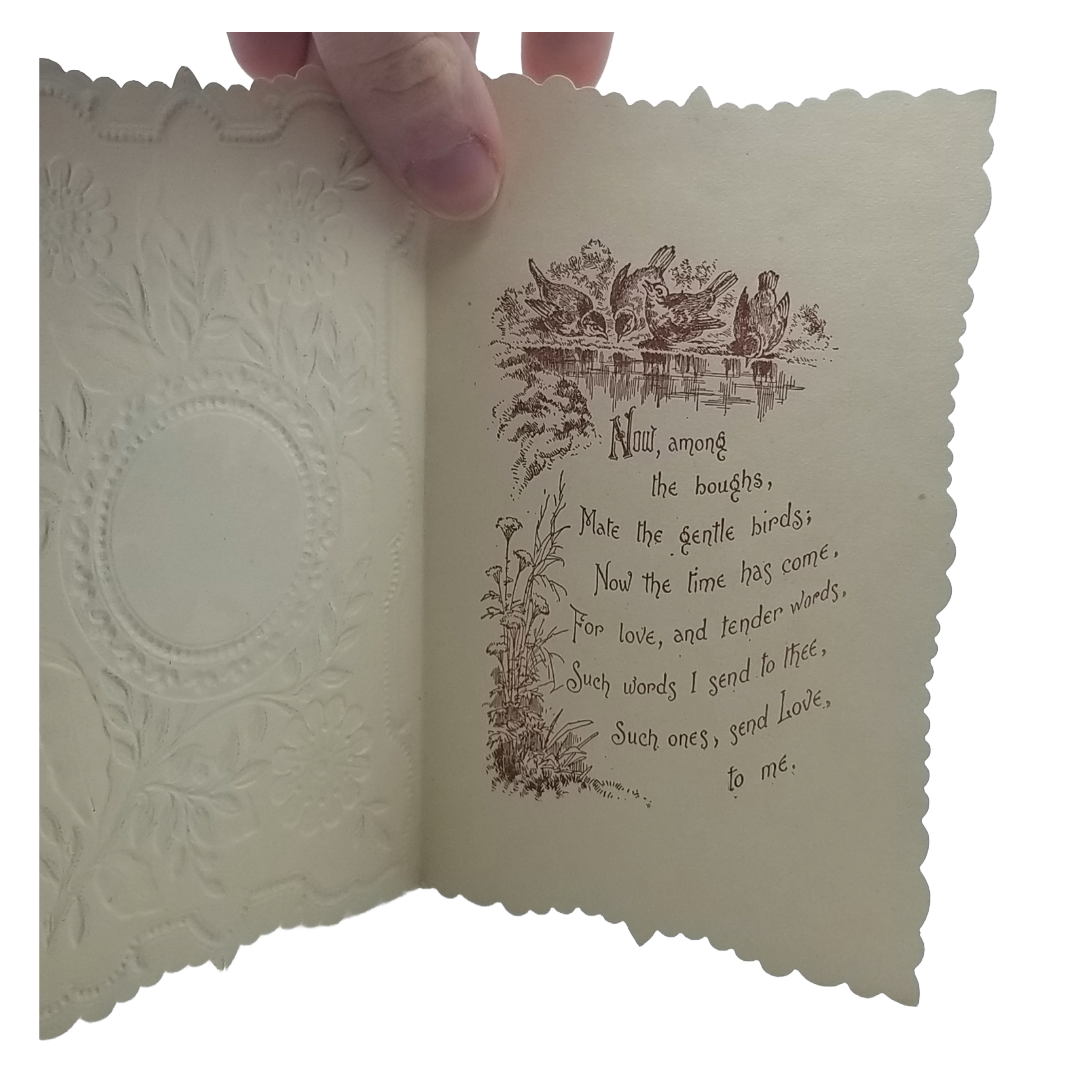 1800s Die Cut Embossed Paper Lace Valentine Card Blue & Gold w/ Flowers