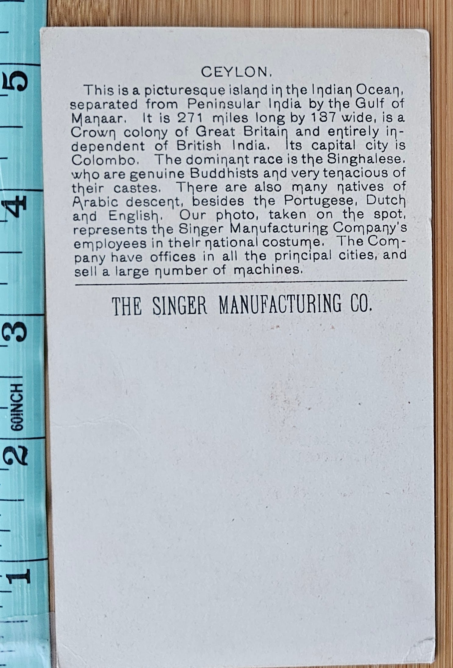 Advertising Trade Card 1893 World's Fair Souvenir Singer Sewing Machine Ceylan
