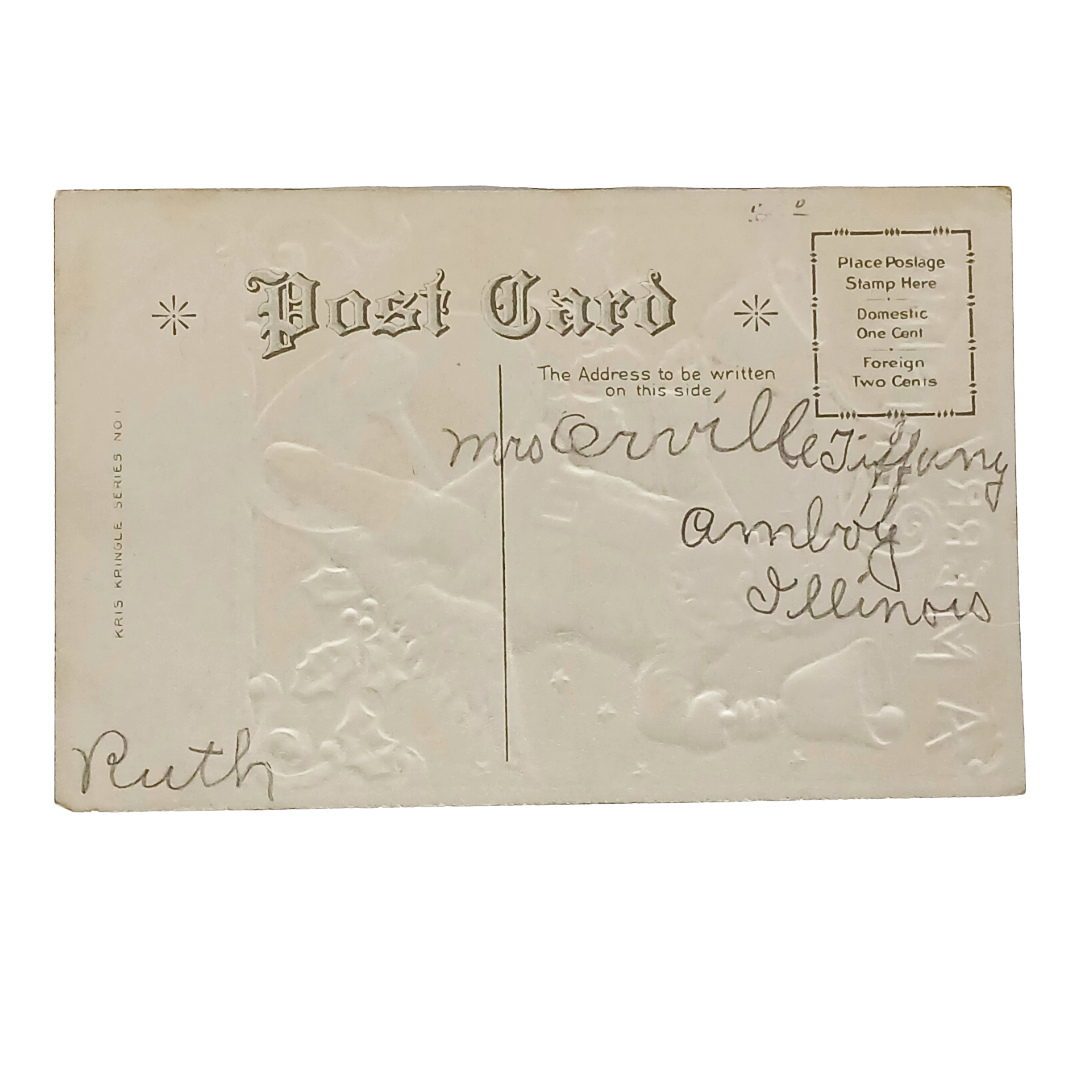 Christmas Postcard Kris Kringle Series 1 Santa Lighting Pipe on...
