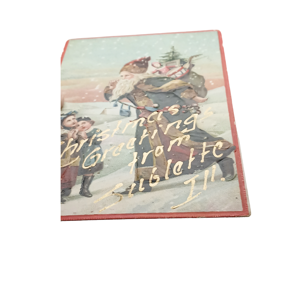 Christmas Postcard Old World German Santa in Green Robe Children Gold Highlights