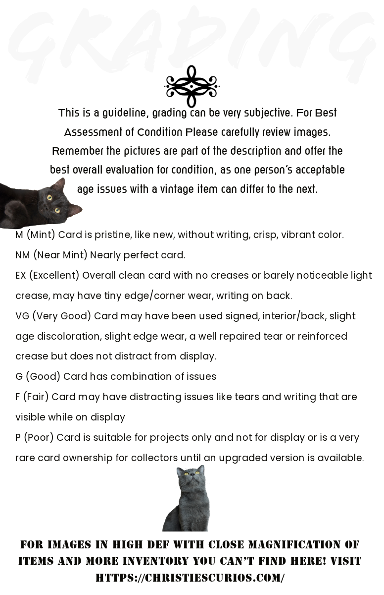For Best Assessment of Condition Please carefully review images and see our grading scale in the photos or under POLICIES/FAQs . Remember the pictures are part of the description and offer the best overall evaluation for condition, one person's acceptable age issues with a vintage item can differ to the next.