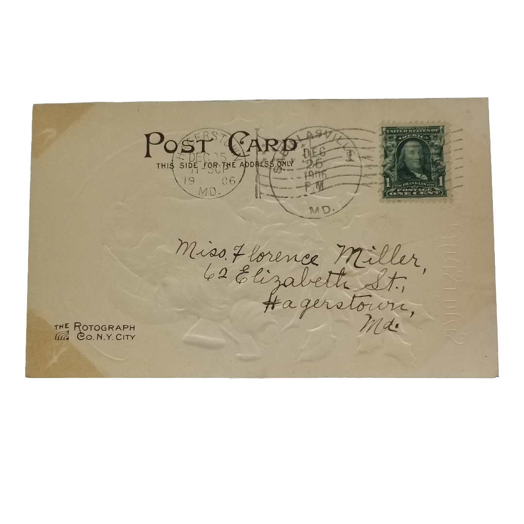 Christmas Postcard Embossed Card w/ Angel Giving Gifts to Children...
