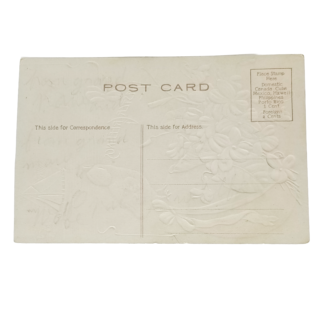 Easter Postcard Baby Chick Air Brushed Gold Egg Pink Flower