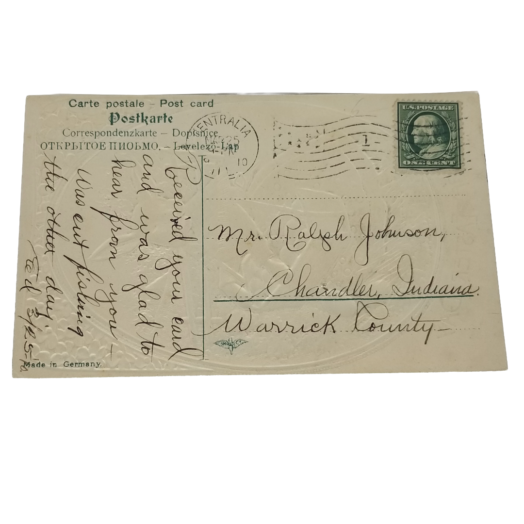 Easter Postcard Tuck Yellow Chick w/Lillies of the Valley Egg...
