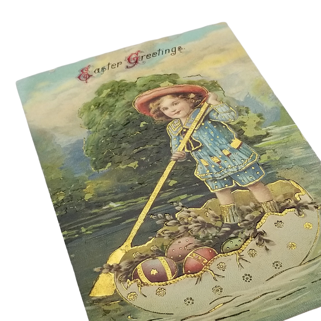 Easter Postcard Girl In Egg Boat