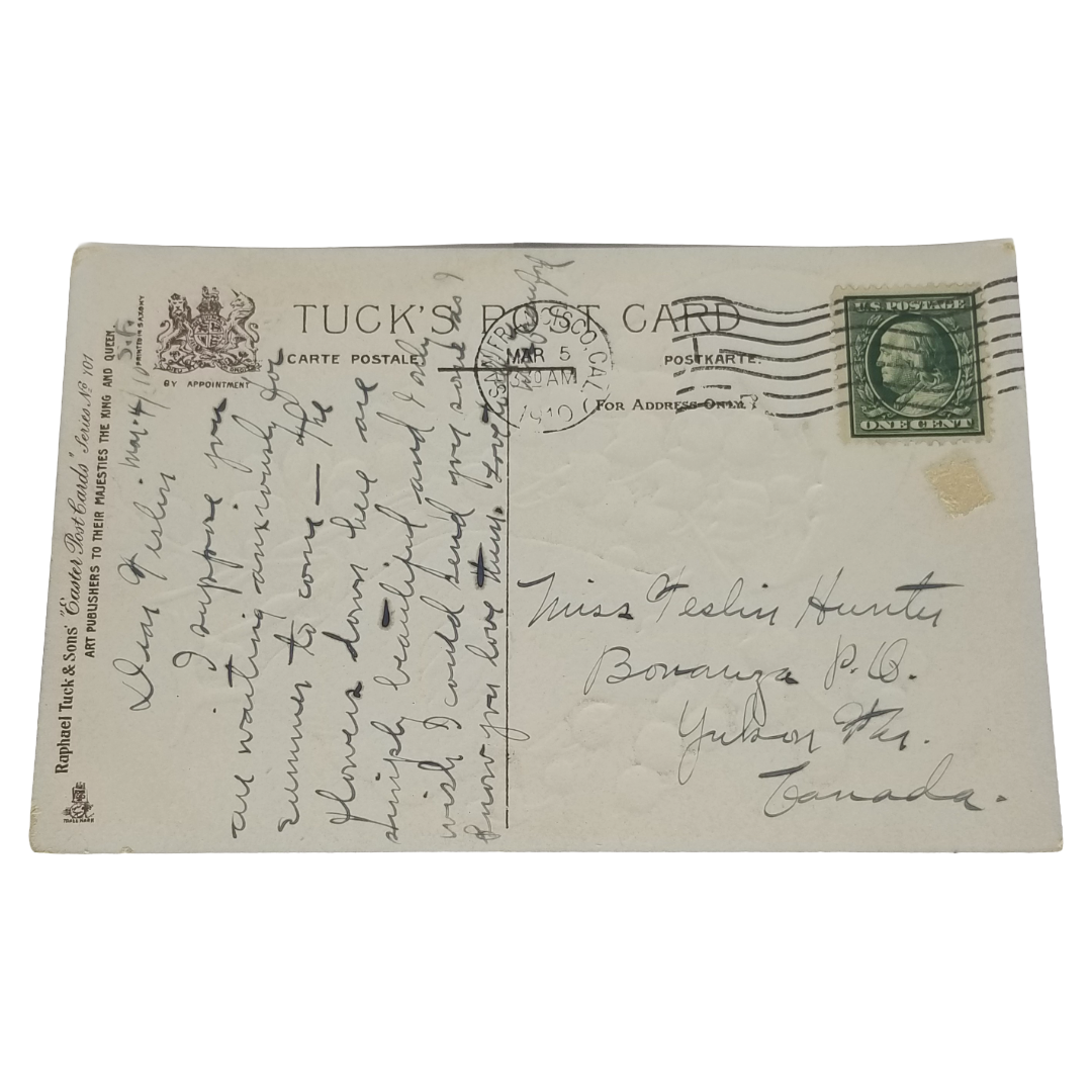 Easter Postcard Tuck Yellow Chick w/Lillies of the Valley Egg Silver Background