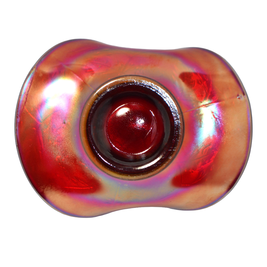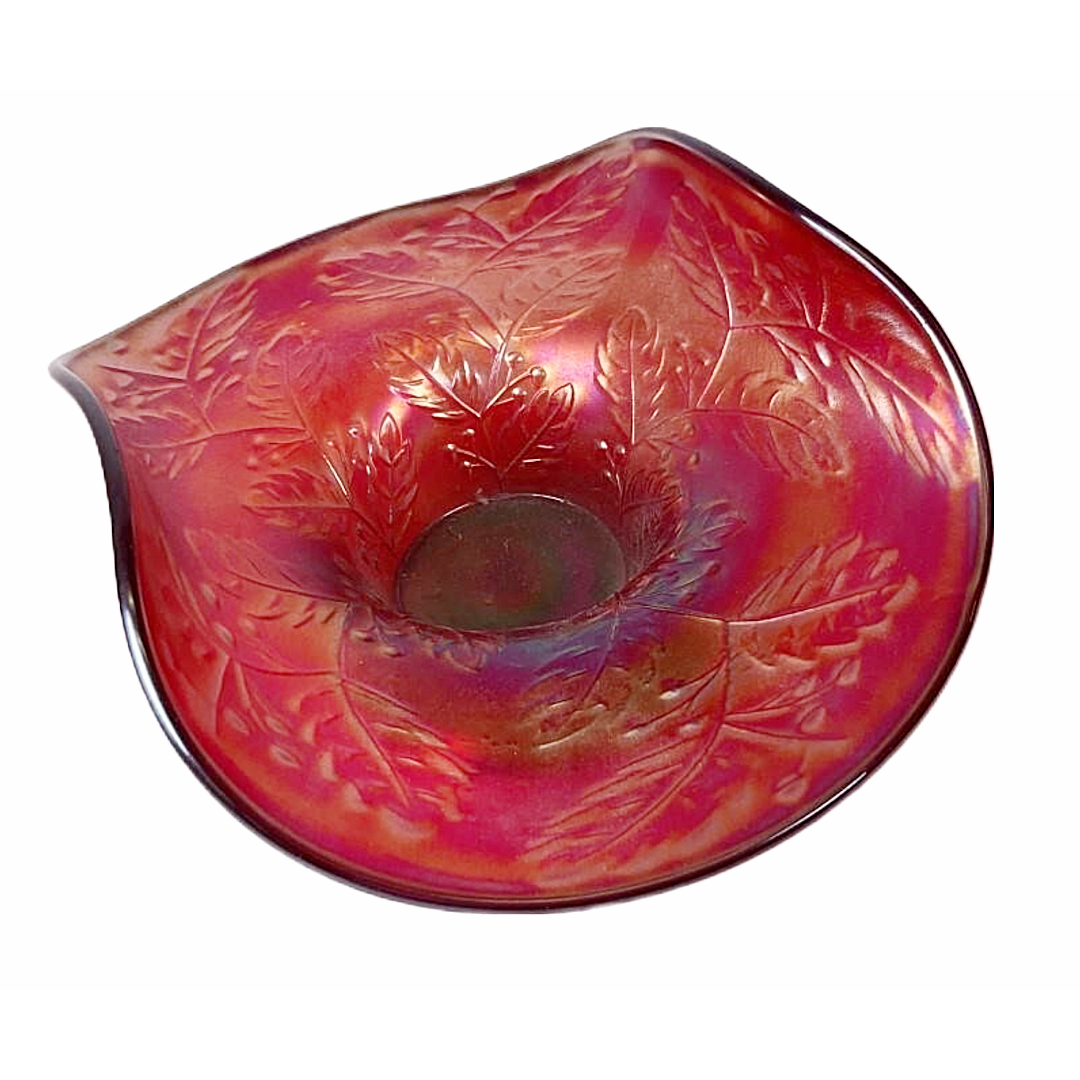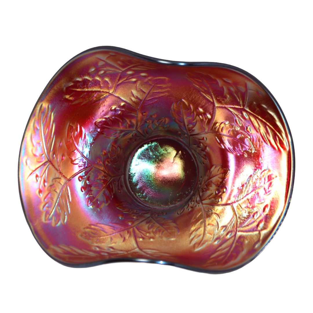 Picture this: a showstopping Fenton carnival glass hat vase that's basically a color-shifting work of art! This cherry red beauty features the iconic Holly branch design and flaunts that mesmerizing two-sides-up silhouette. The iridescent finish dances with jewel-toned brilliance under any light—natural or otherwise—making it an absolute head-turner for collectors. Rare, radiant, and ridiculously gorgeous, this piece of Fenton glass deserves a spot where everyone can admire its shimmering charm.