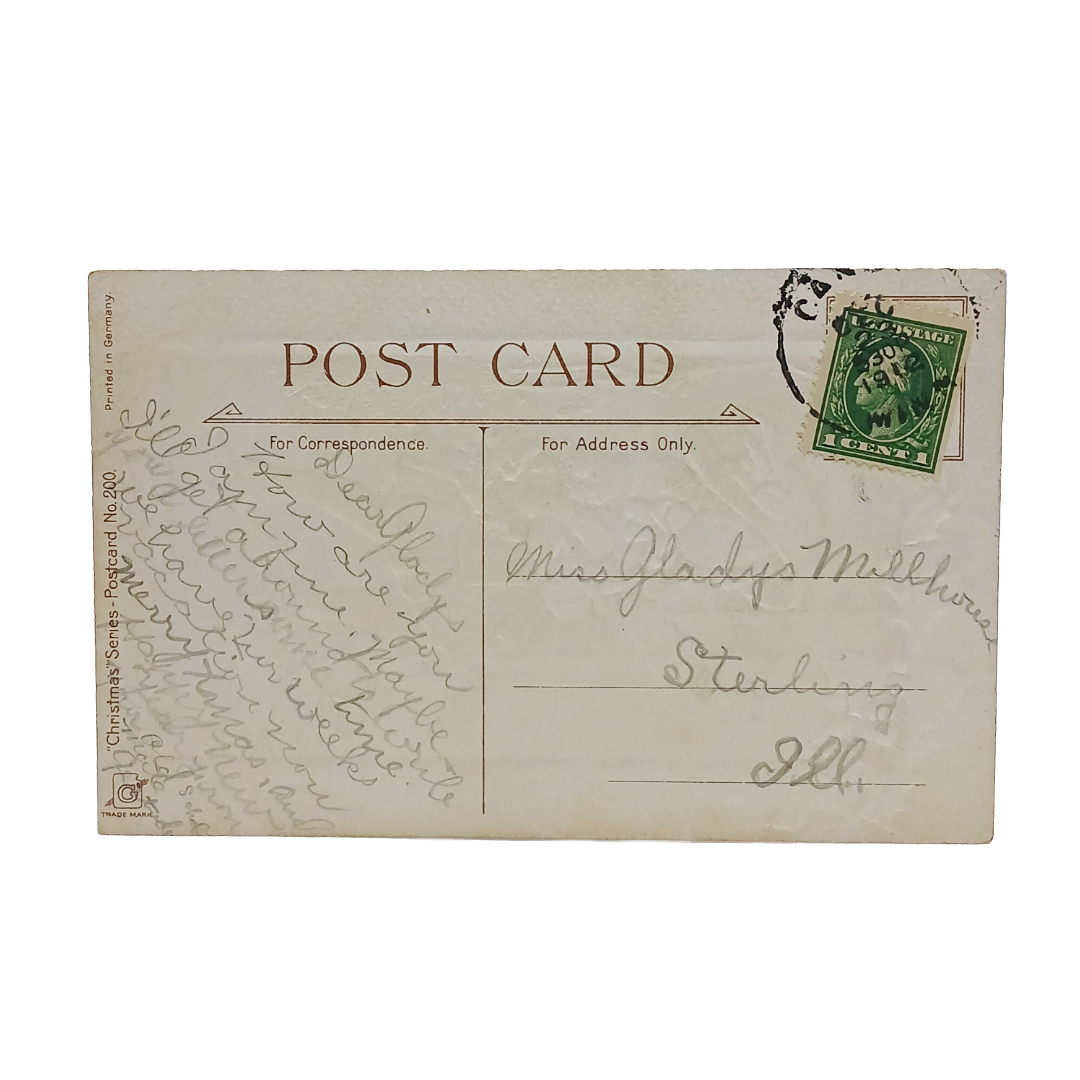 Frances Brundage Christmas Postcard: Girl with Gifts, Series 200