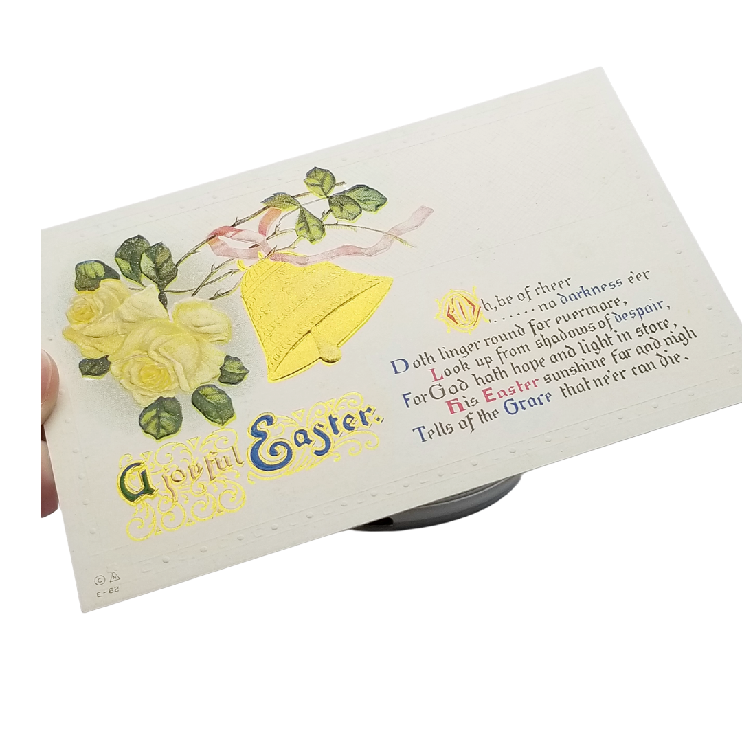 Easter Postcard Yellow Roses with Gold Embossed Bell Art Nouveau Style