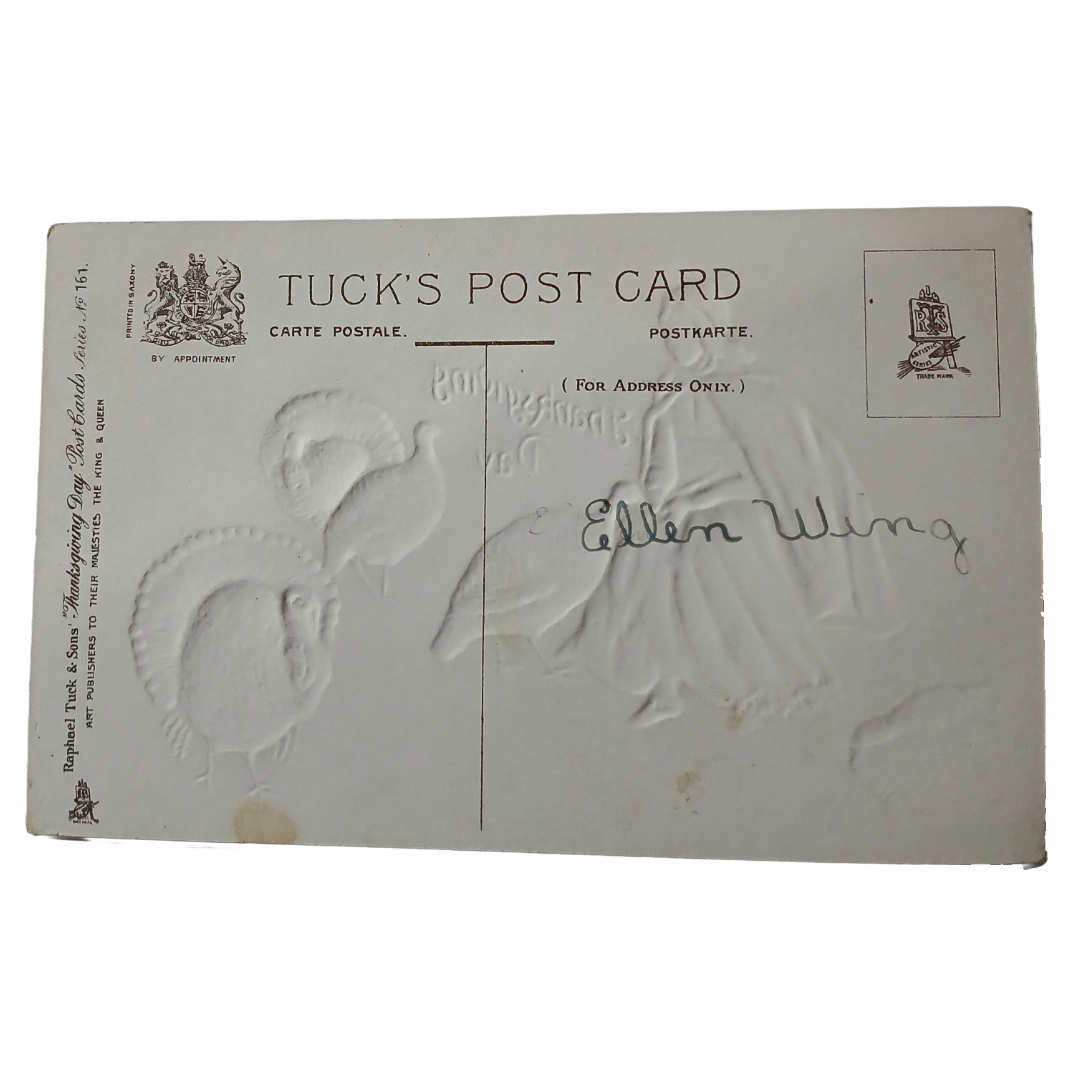 Thanksgiving Postcard Pilgrim Maiden w/ Flock of Turkeys Tuck Series 161