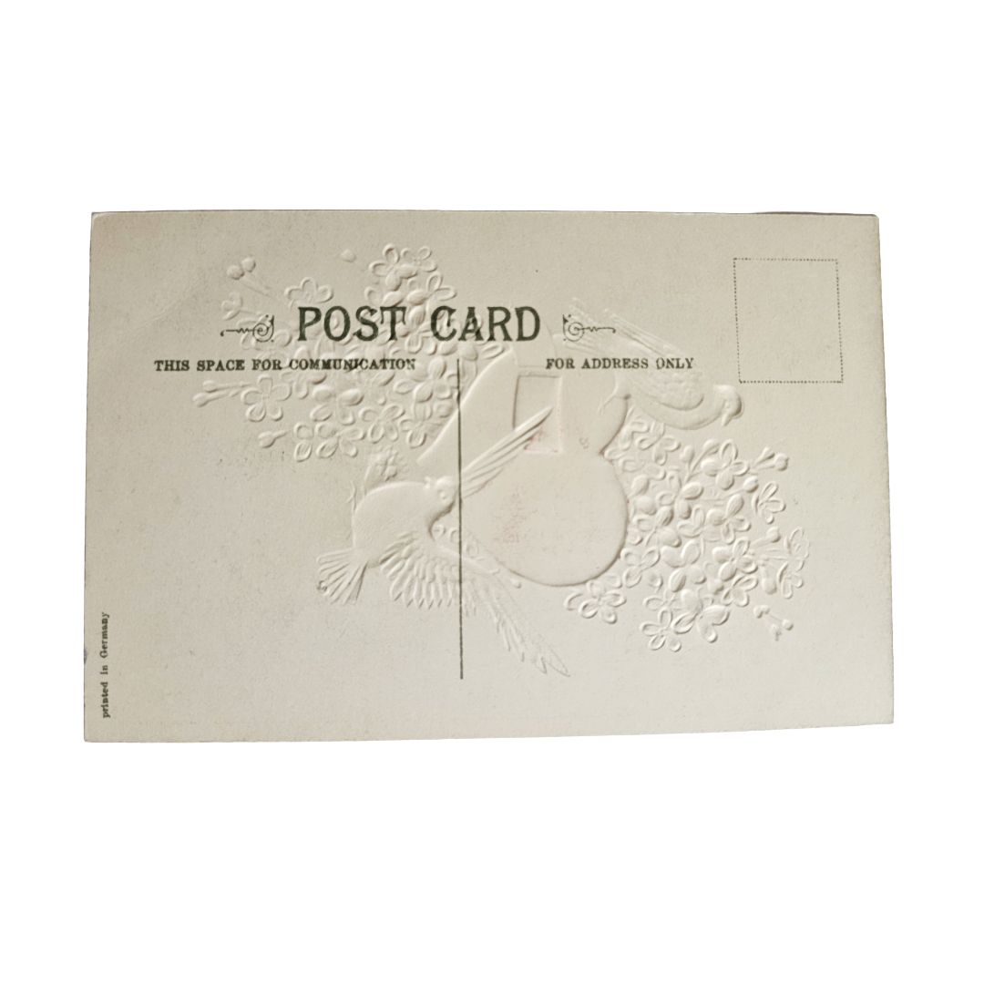 Valentine Postcard Hearts Flowers and Dove Birds Embossed Germany Card