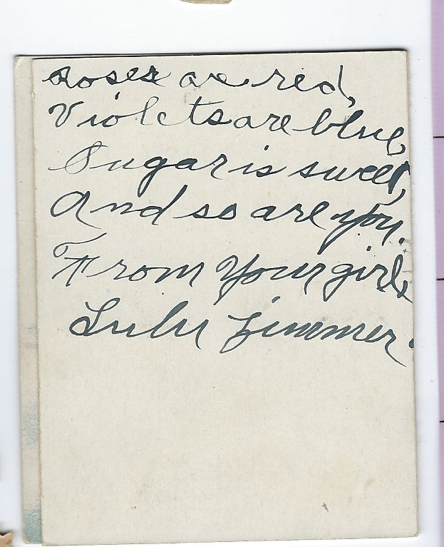 Vintage Die Cut Valentine Card Girl Under Umbrella Boy w/ Heart at Fence
