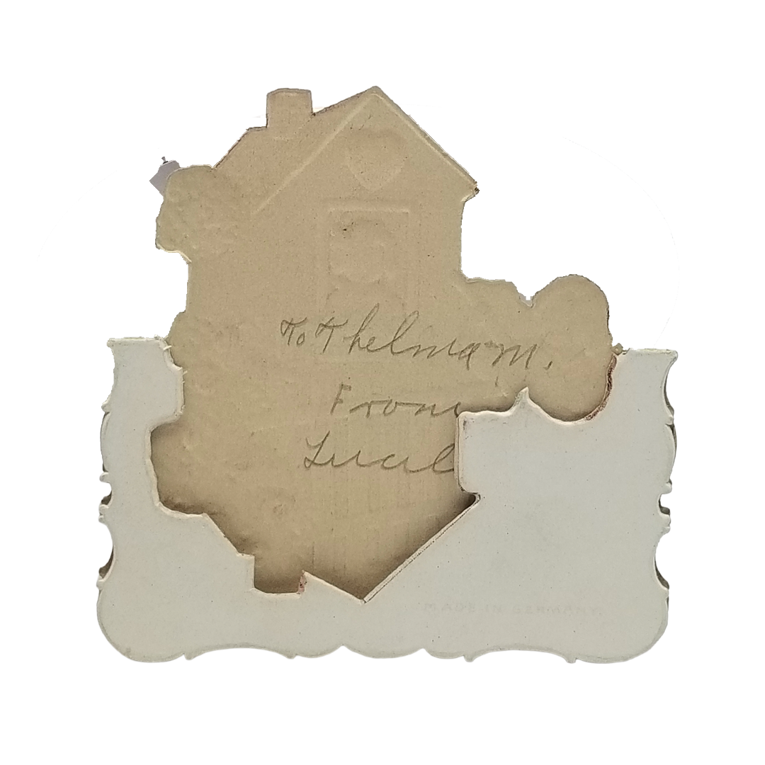 Vintage German Valentine Die Cut Card Pop Out Girl in Window Boy Serenading